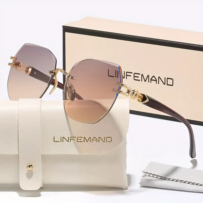 LINFEMAND Fashion Geometry Lightweight Frameless Decorative Glasses UV400 Women’s Party Dance Surprise Unique Festival Gift