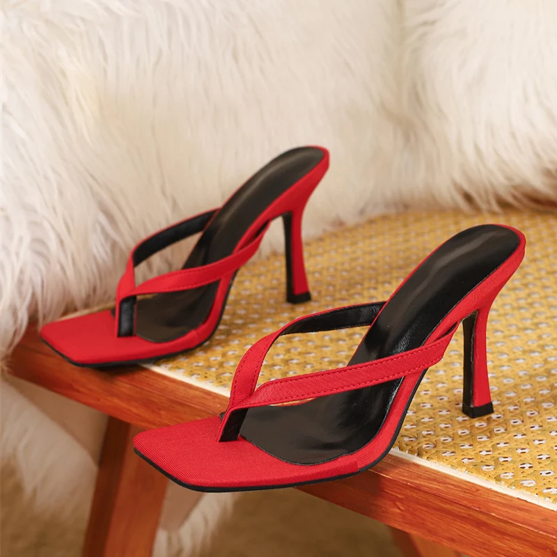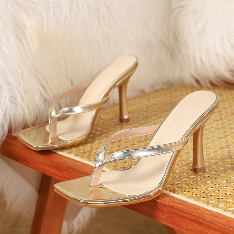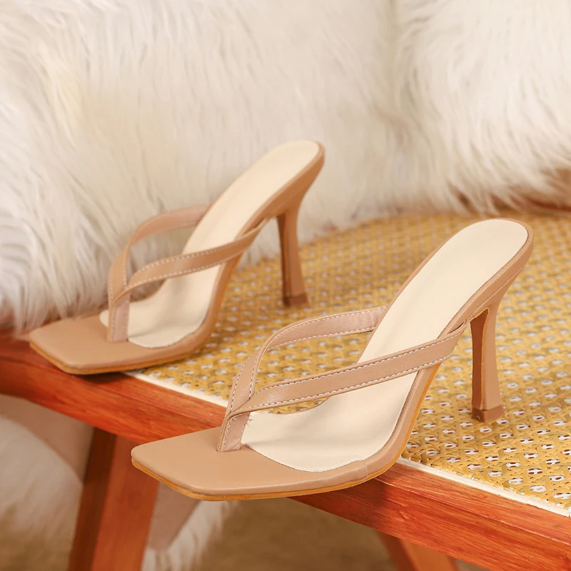 Liyke Big Size 42 43 44 Women Wide Square Clip Toe Slippers Cozy Thin Heels Mules Slides Shoes Banquet Party Flip Flops Sandals