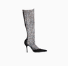 Luxury Black Net Mesh Knee High Boots Peep Toe Bling Bling Crystal Embellished Tight High Boot Cut-out Party Dress Shoes