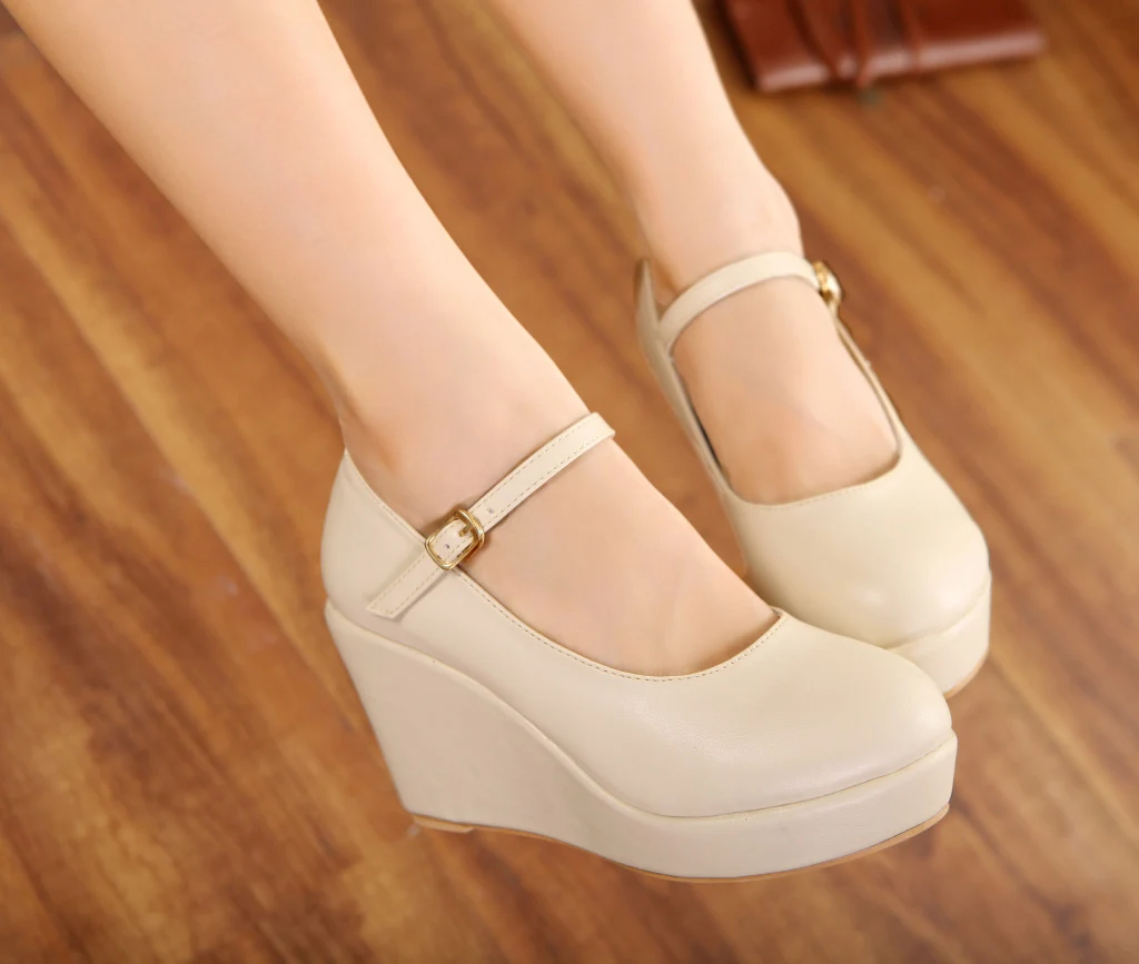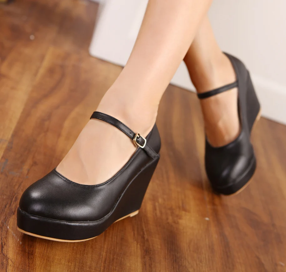 Mary Janes High High Wedges Pu Round Toe Casual Buckle Strap Summer Fashion Shoes Women