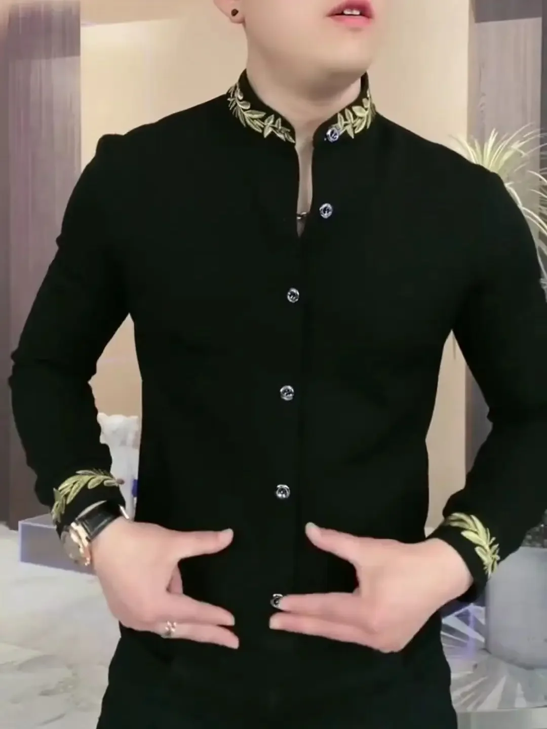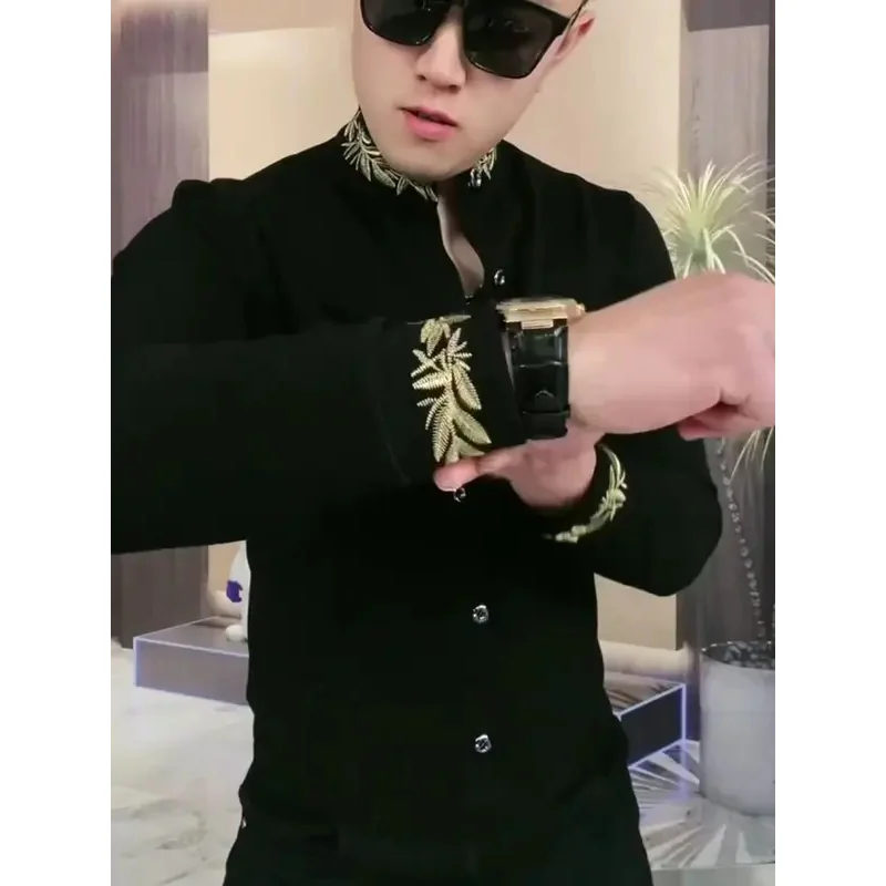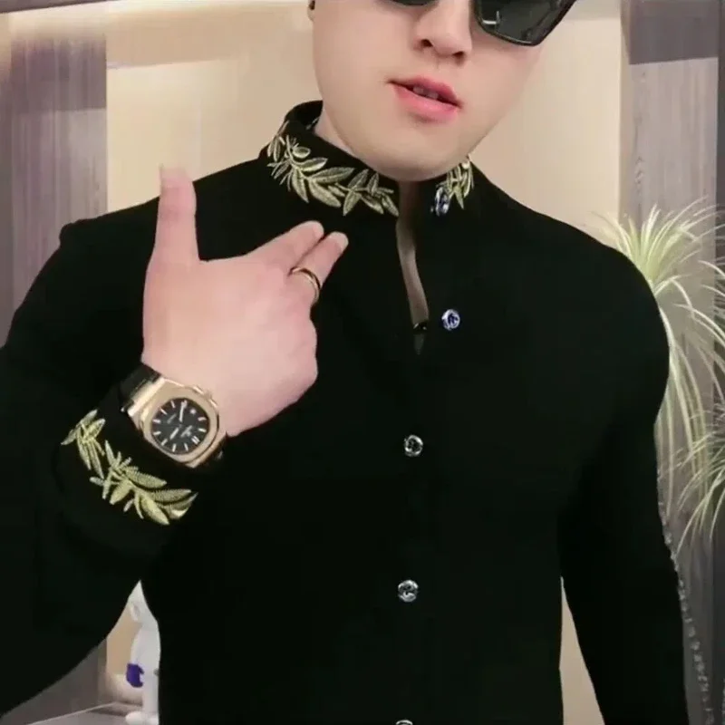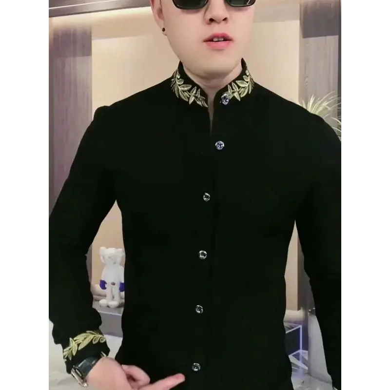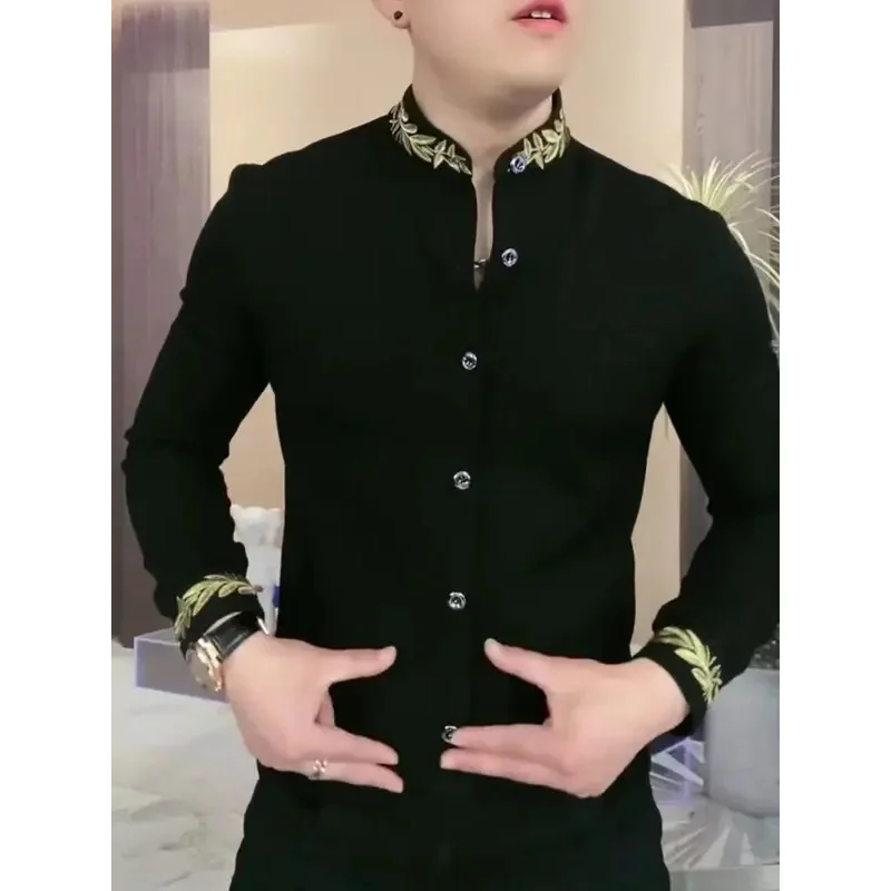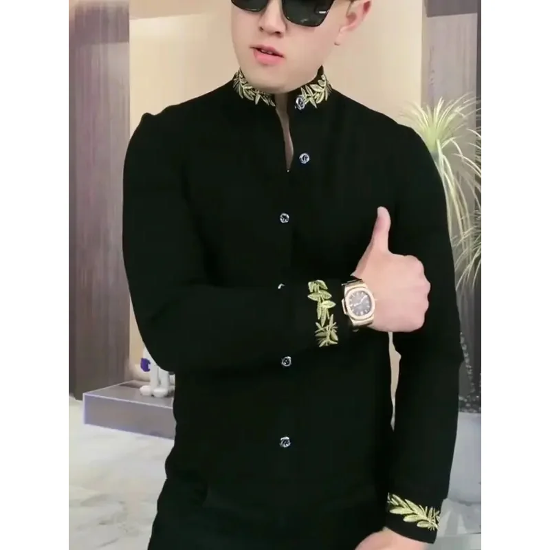 Men’s Long SleeveTShirt Stand Collar Handsome Cool All-Match Bottoming Shirt Spring and Autumn Leisure All-Match Black Handsome