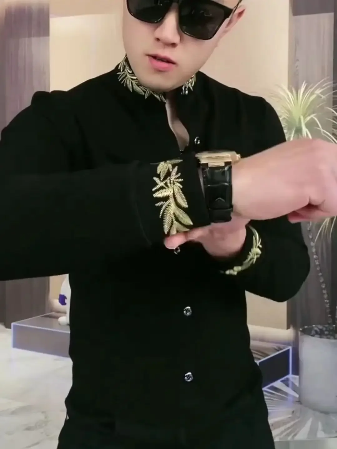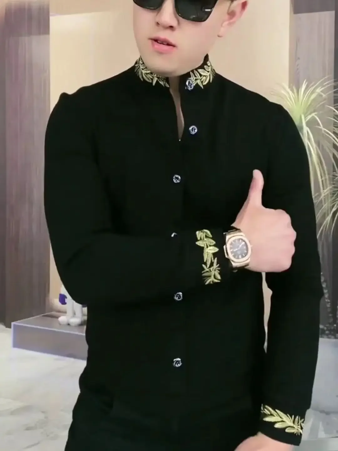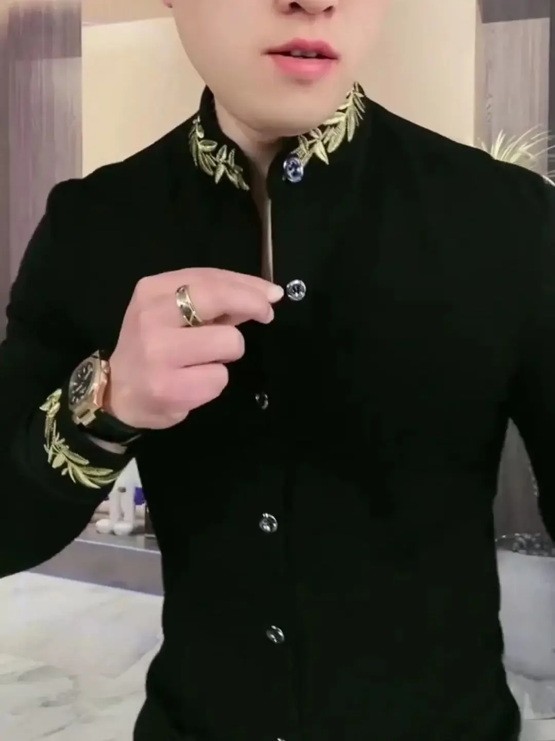 Men’s Long SleeveTShirt Stand Collar Handsome Cool All-Match Bottoming Shirt Spring and Autumn Leisure All-Match Black Handsome