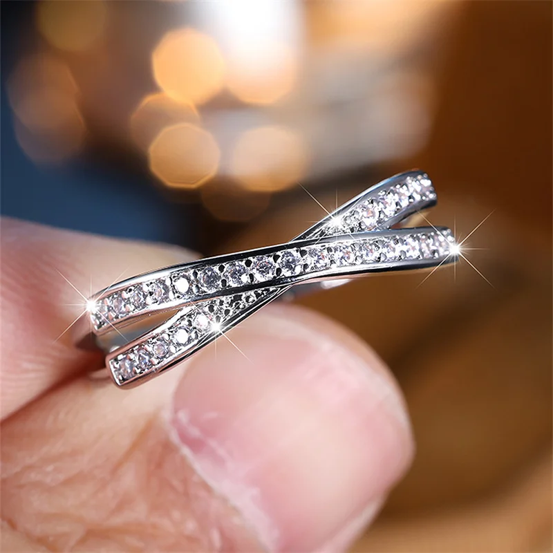 Minimalist Stacking Crossed Wedding Bands Black Gold Silver Color Blue Red Green Stone White Zircon Thin Rings For Women Jewelry