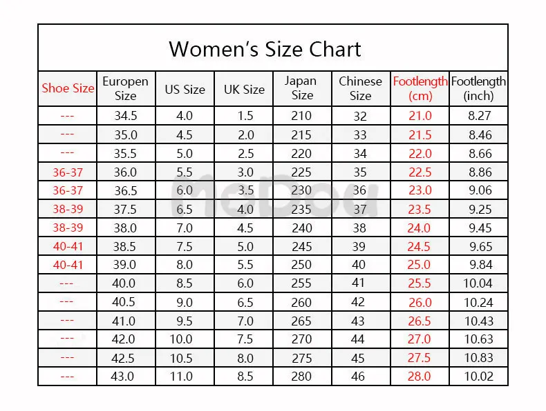 For example,my foot length is 240mm,I will choose size 38-39,but if my foot is wide or fat,I will add 5mm to my foot length(245mm),and choose size 40-41.