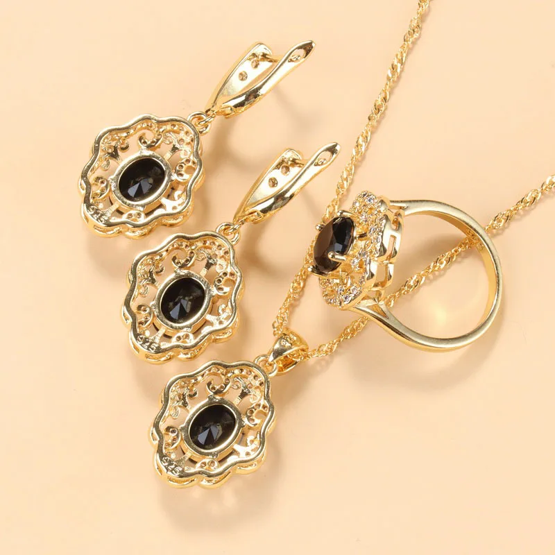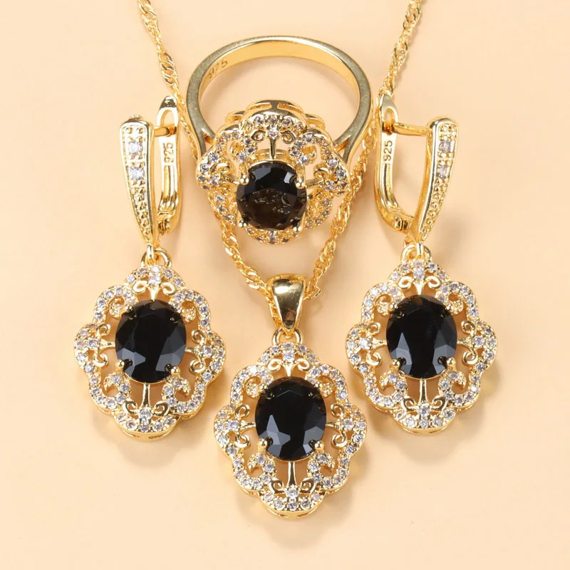 Morrocan jewelry Sets 18K Gold Plated 12-Colors Zirconia Earring Necklace And Bracelet Ring For Women Fashion Accessories