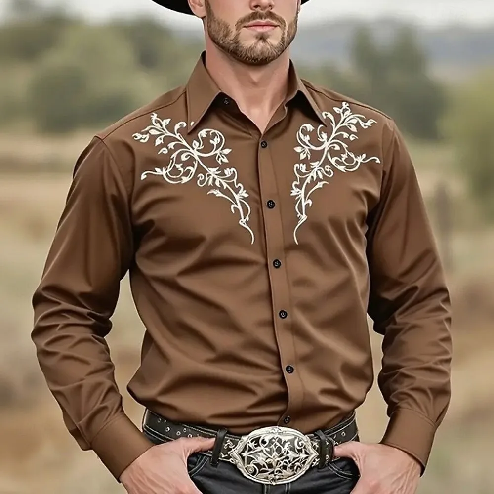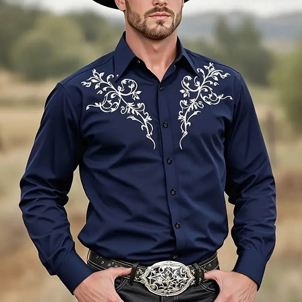 New classic vintage men’s shirt four seasons must-have casual flip-over button ethnic style printing new series