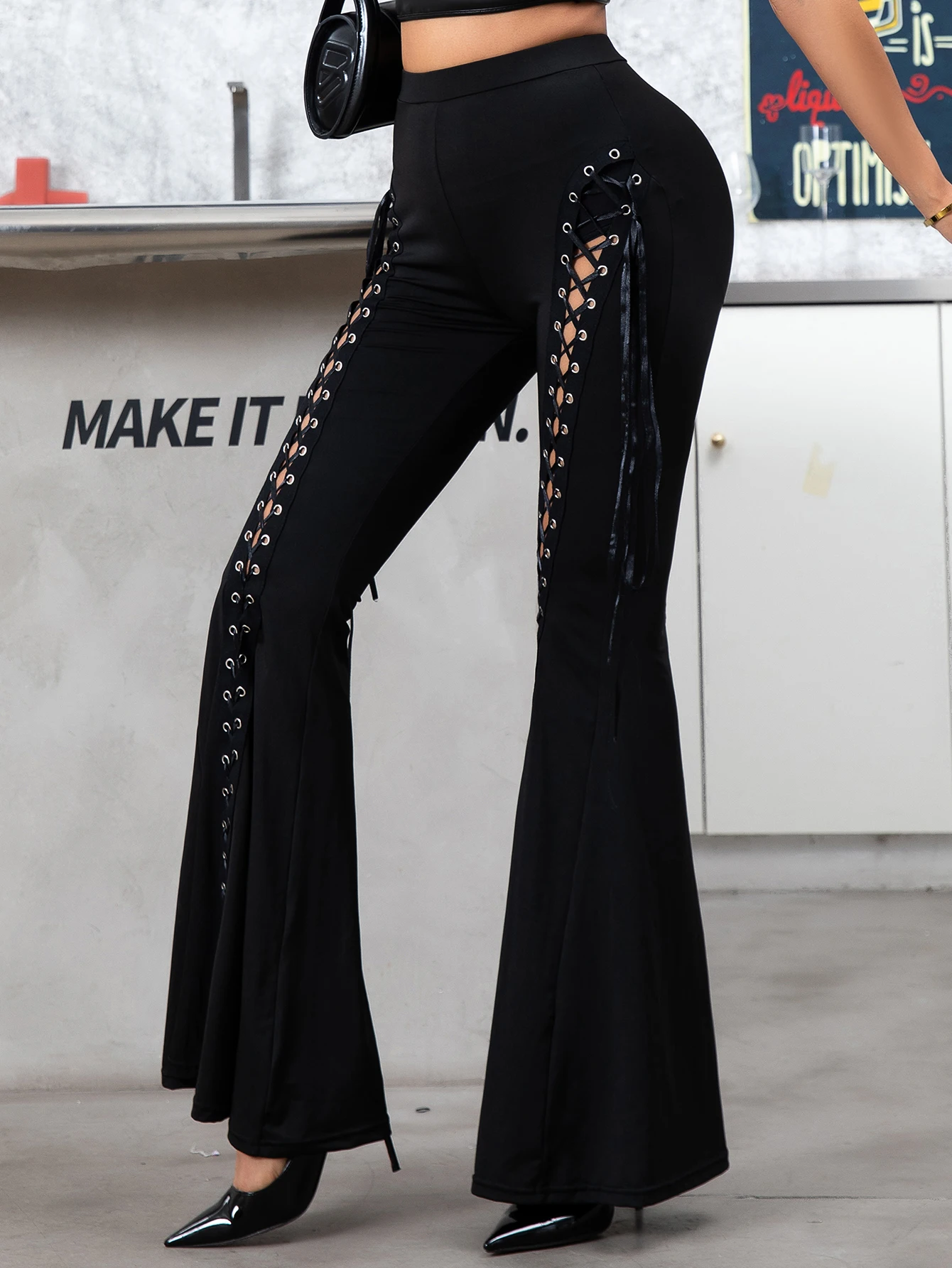 New Dark Street Style Corns With Large Flare Pants Fashion European And American Spice Girls Sexy High Elastic Slacks Women