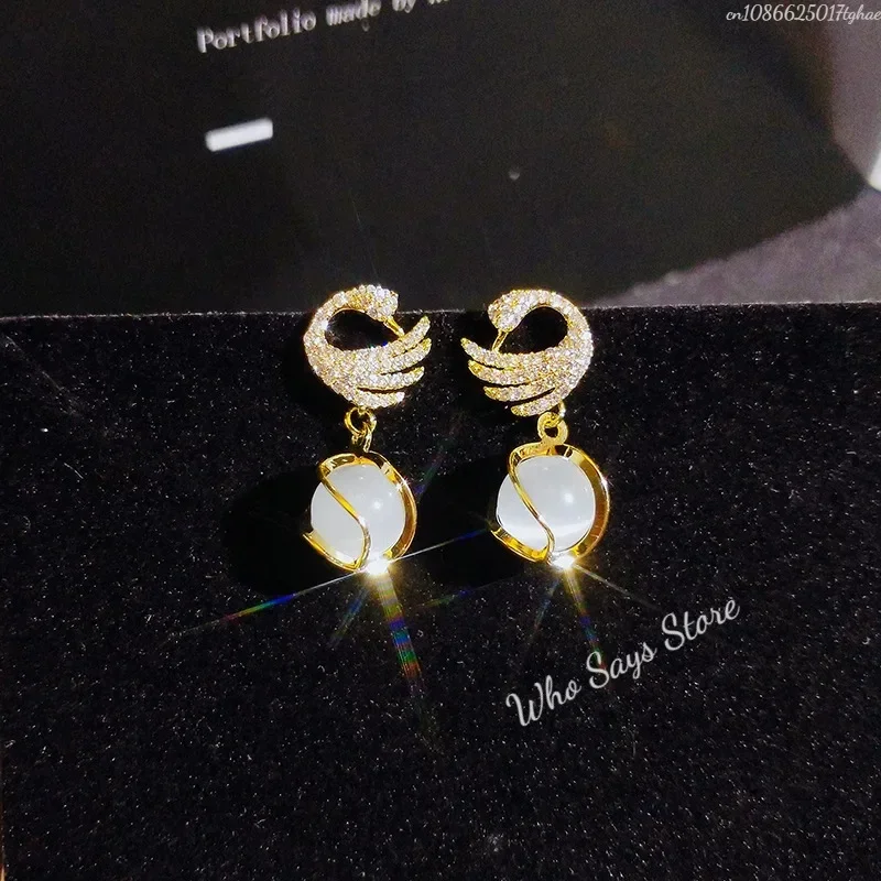 New Fashion Fine Swan Earrings Women Stainless Steel Earrings Temperament High Quality Jewelry Opal Jewellery Women