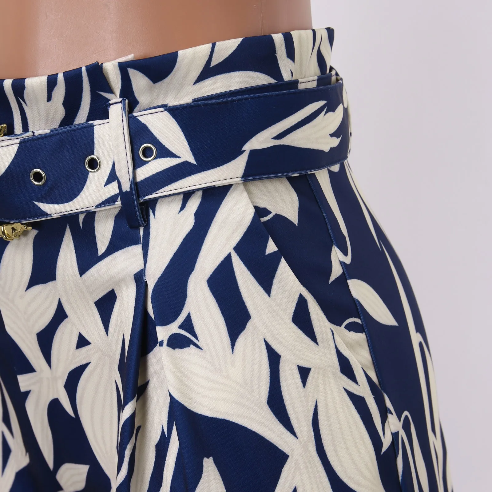 Casual Fashion Slim Set Women’s Shorts Set Sleeveless Vest Top Suit Shorts Two Piece Set Floral Print Basic Tank Top & Shorts Set With Belt Features:
