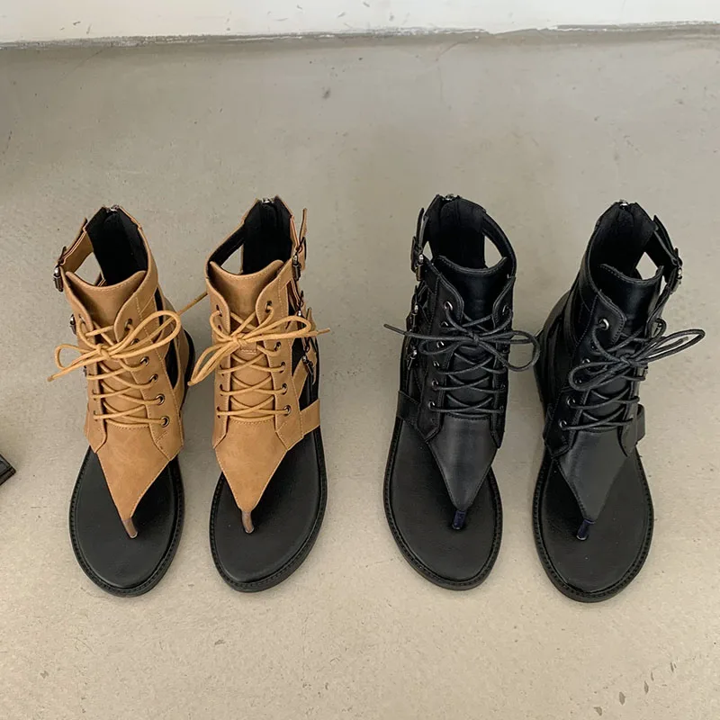 New In 2025 Designer Luxury Woman Flats Shoes Buckle Fashion Hollow Ladies Footwear Sandals Lace Up Female Shoes Flip Flops