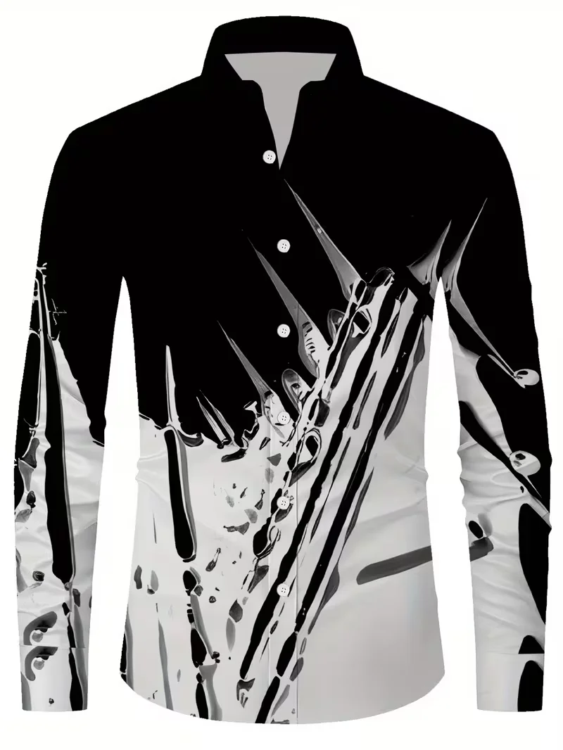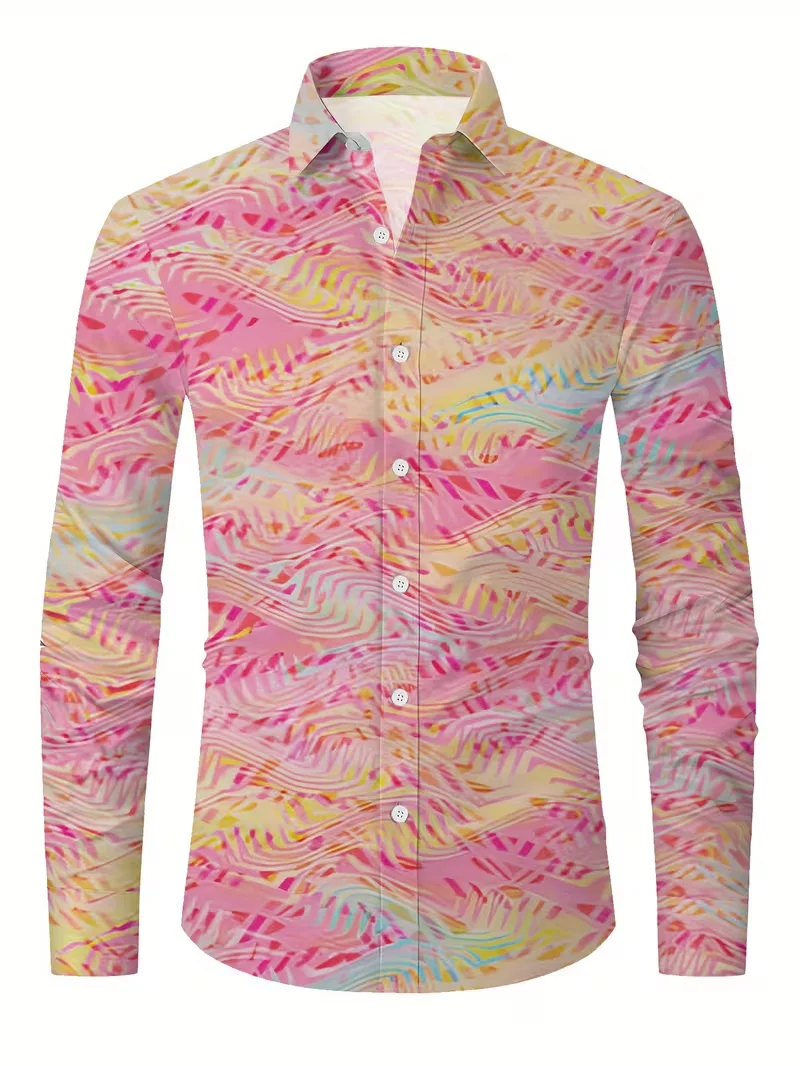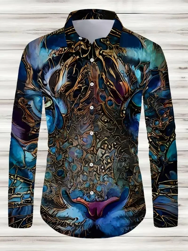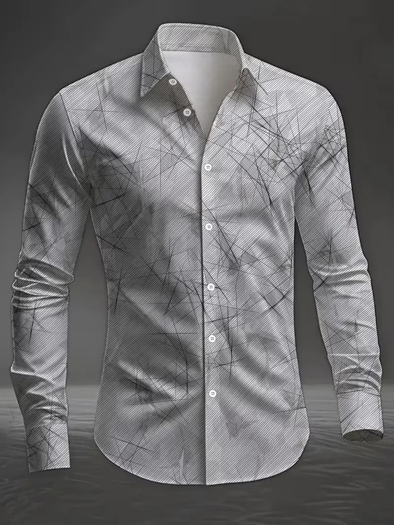 New men’s shirt 3D line printed casual shirt men’s retro shirt long sleeved printed fashionable clothing top