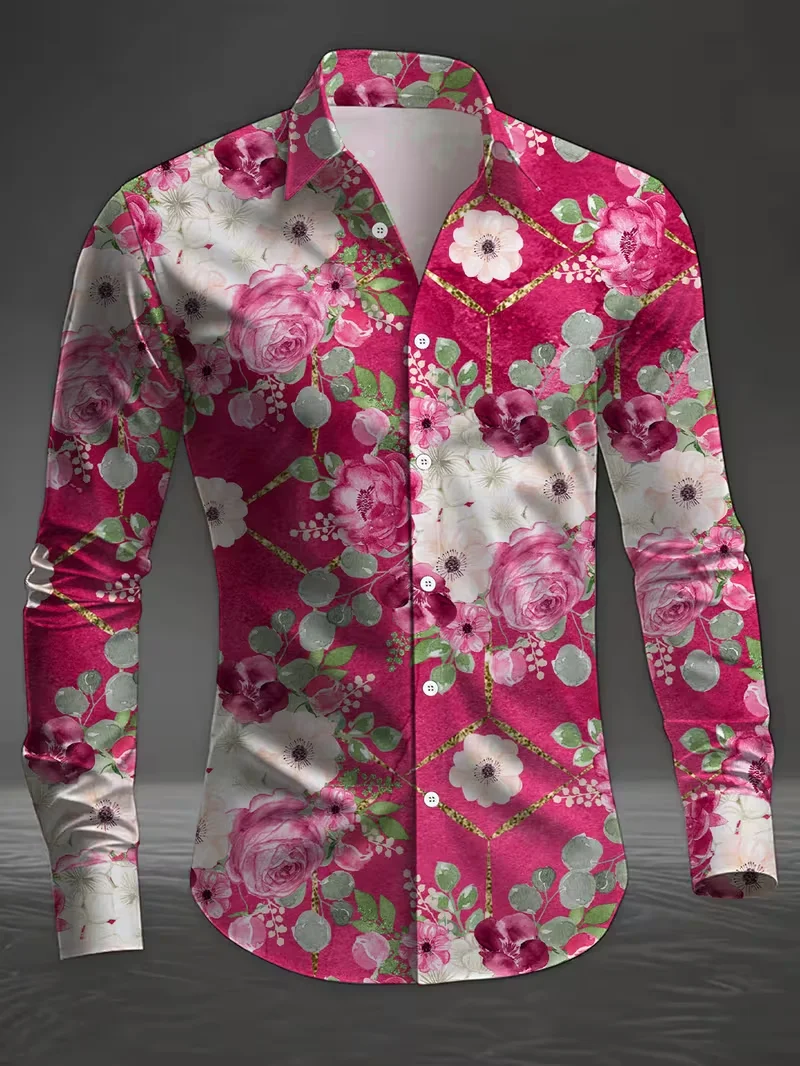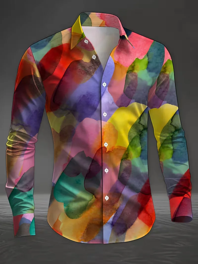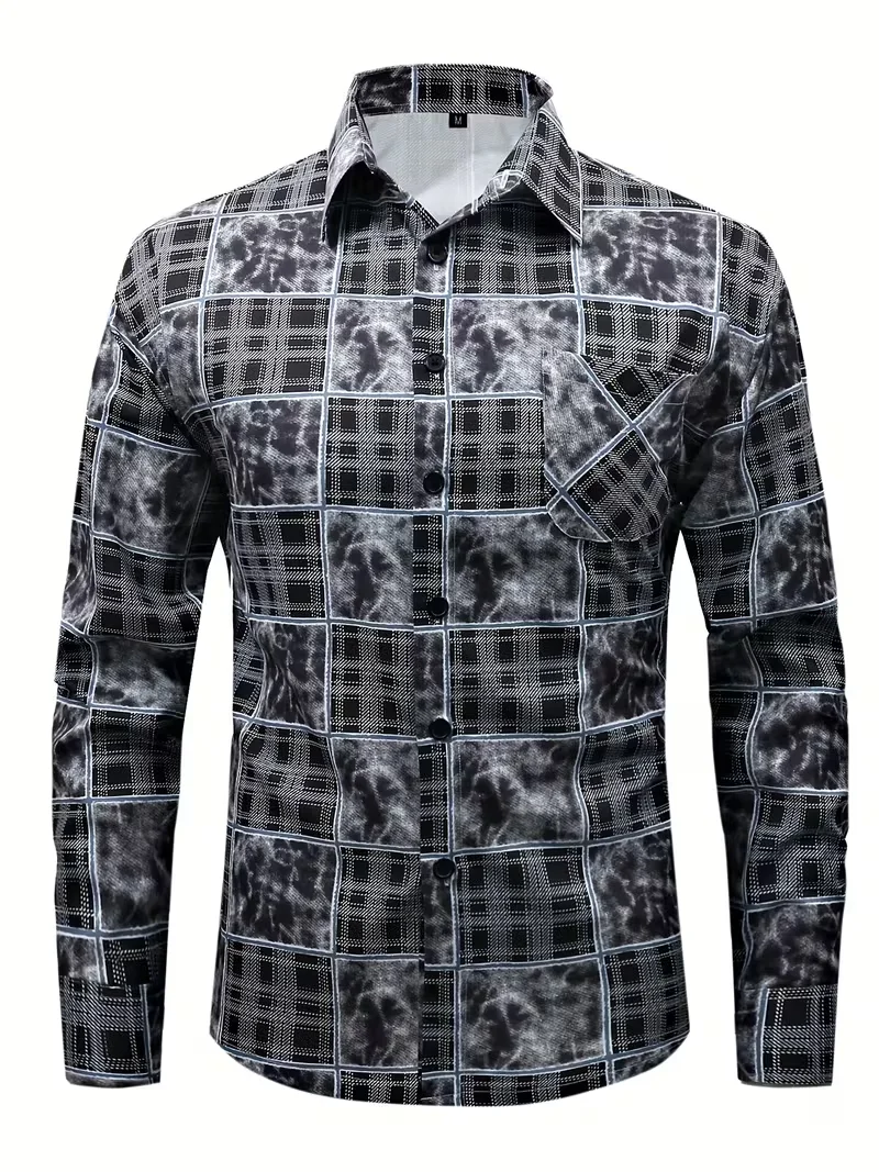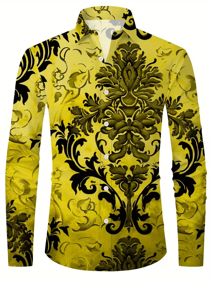 New men’s shirt 3D line printed casual shirt men’s retro shirt long sleeved printed fashionable clothing top