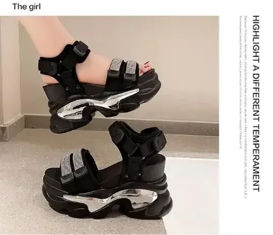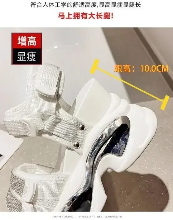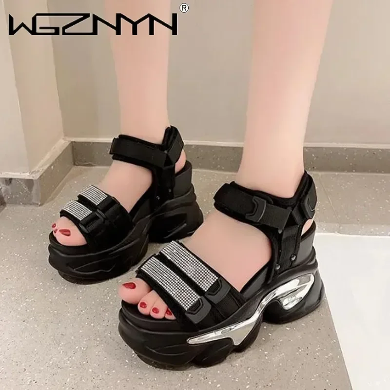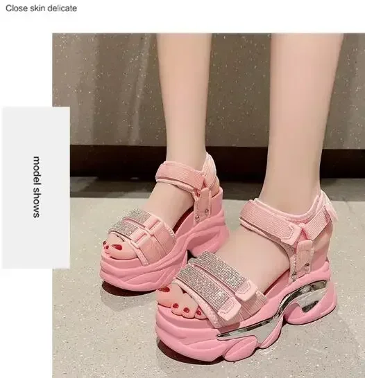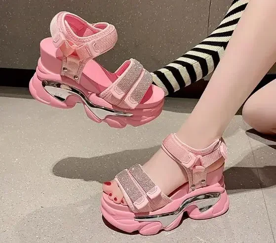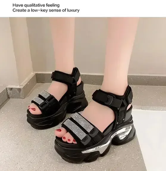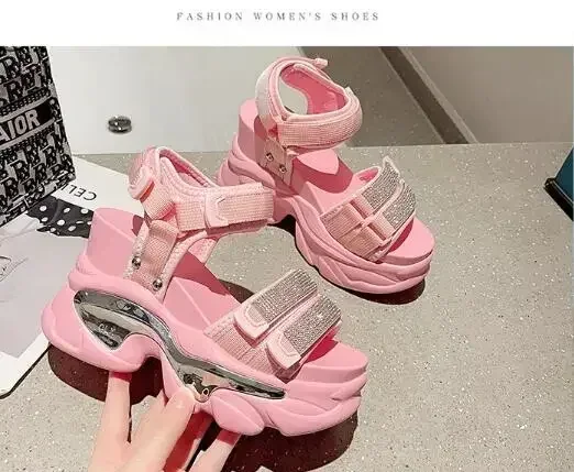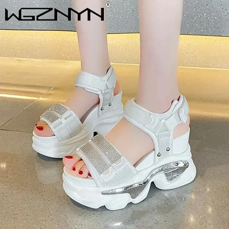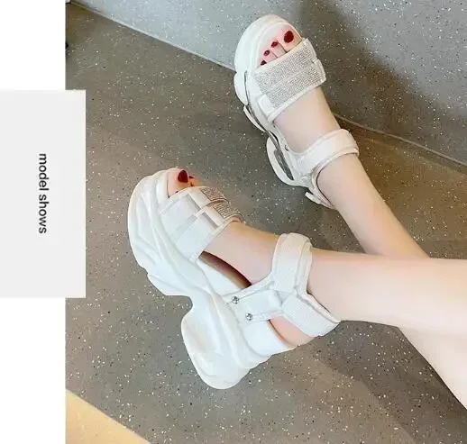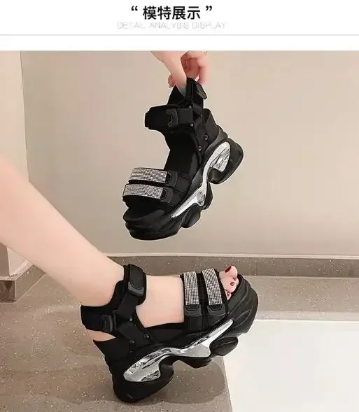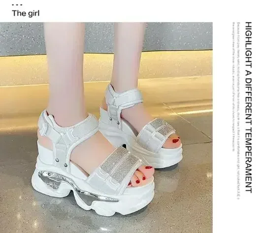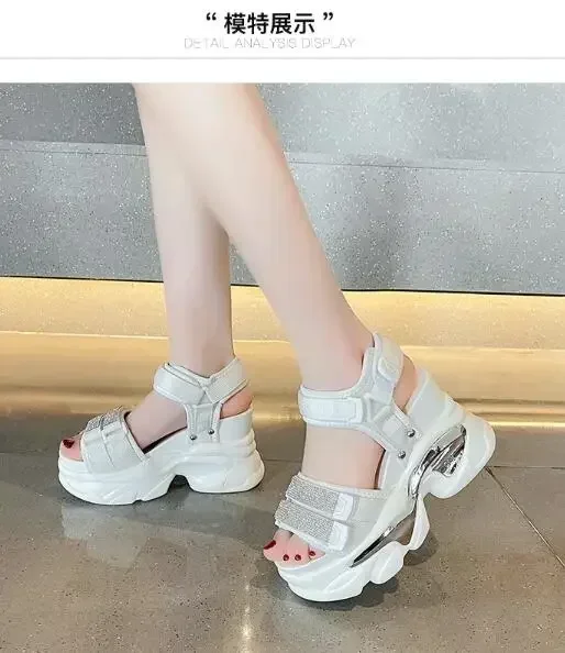 NEW Summer High Platform Women Sandals Buckle 10CM Wedges Bling Shoes Fashion Outside Chunky Sandals Beach Casual Slides Woman