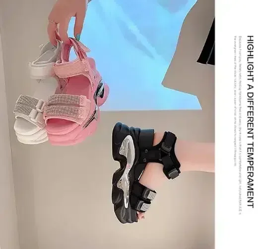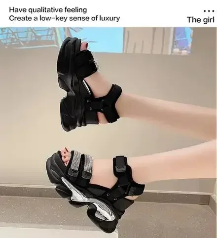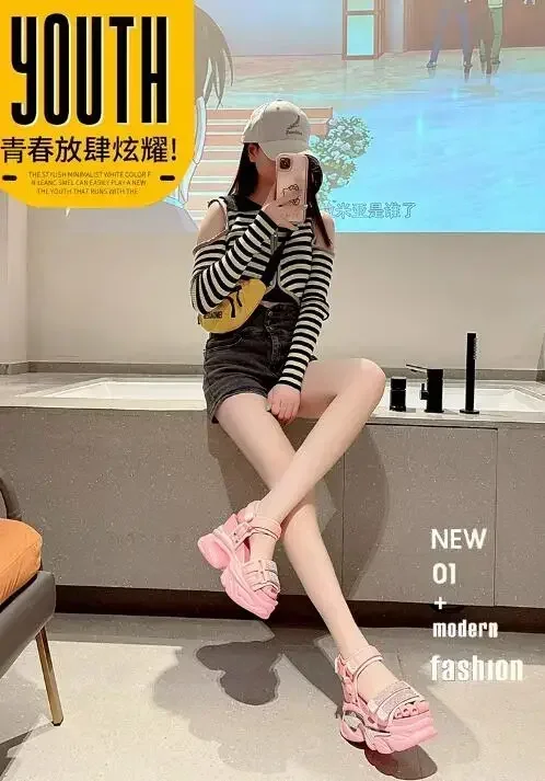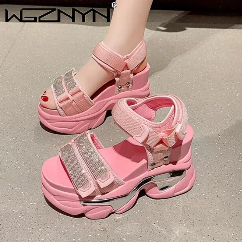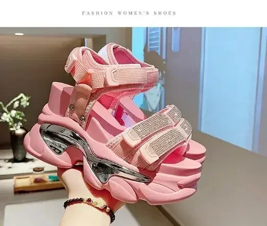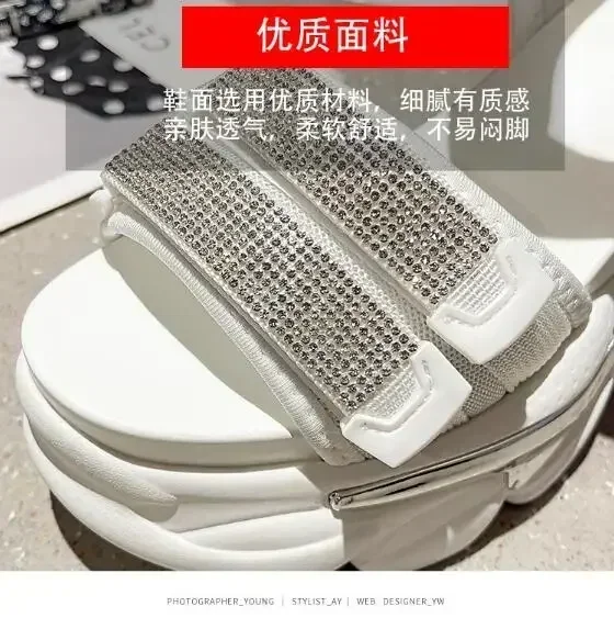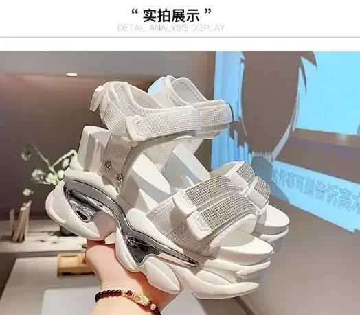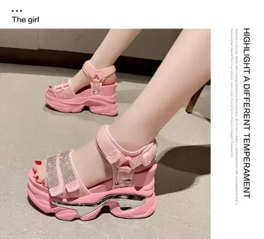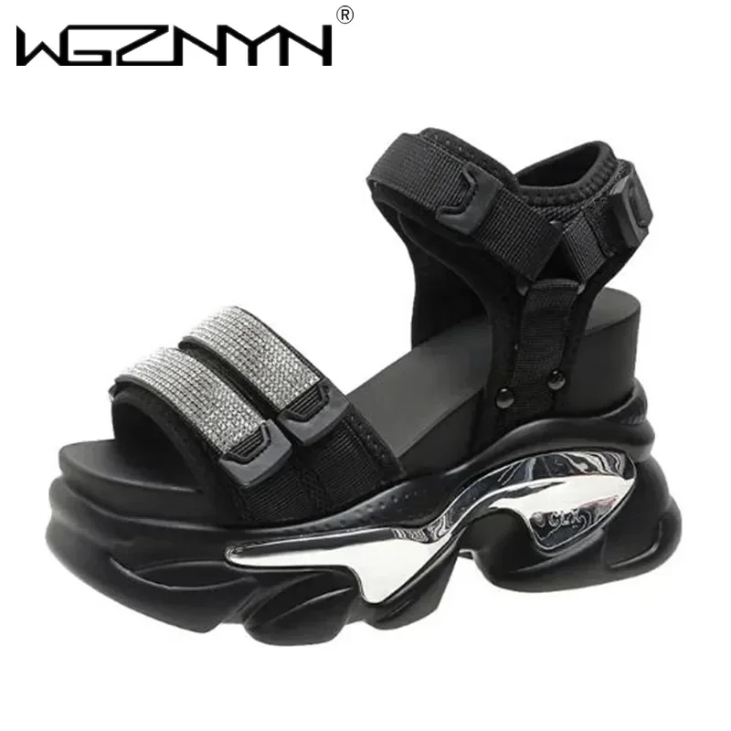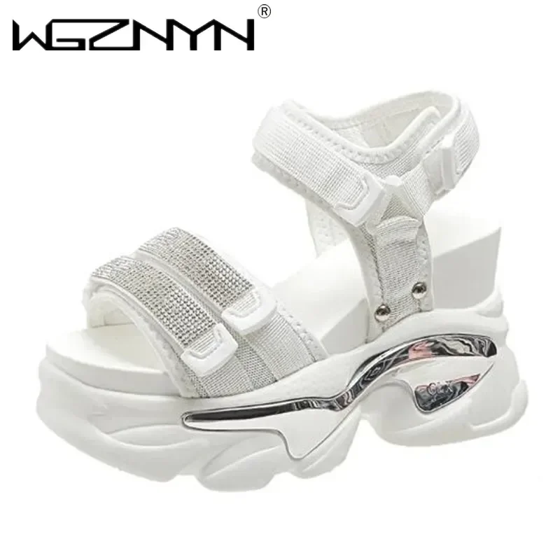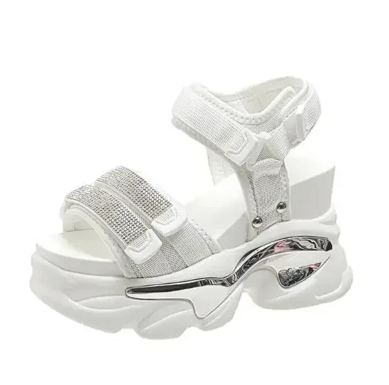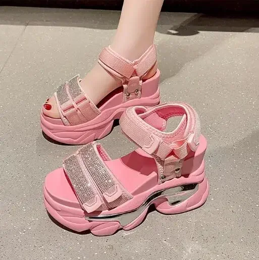NEW Summer High Platform Women Sandals Buckle 10CM Wedges Bling Shoes Fashion Outside Chunky Sandals Beach Casual Slides Woman