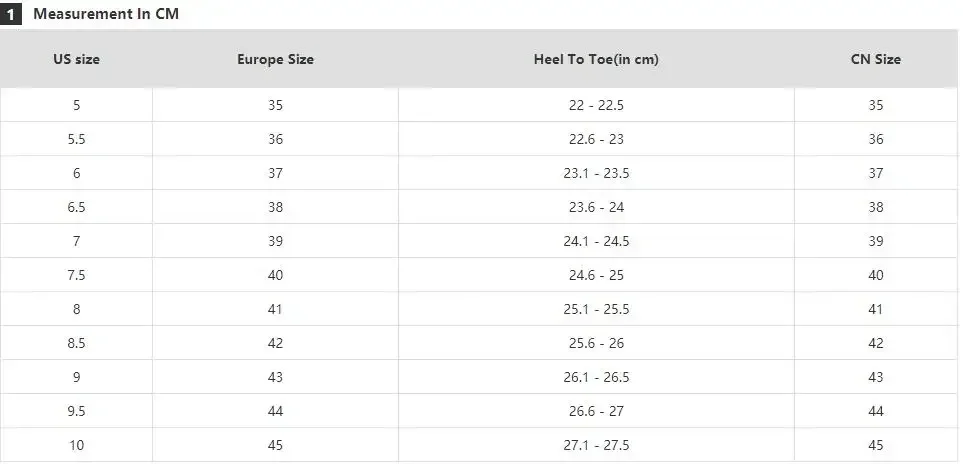 NOTE: foot length is not the insole length!( foot length less than insole length )manual measurement, please allow 0.5cm error.thanks