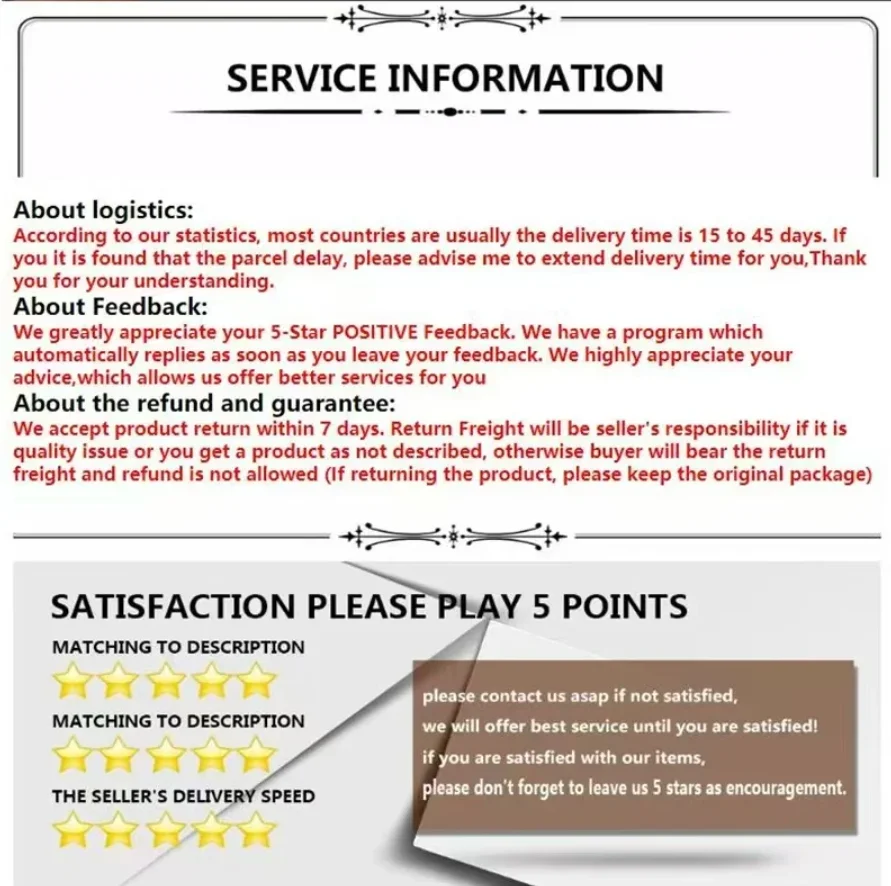 • If you did not receive the product within the guaranteed time( 45 days not including 2-5 day processing) you can request a refund or a reshipment.