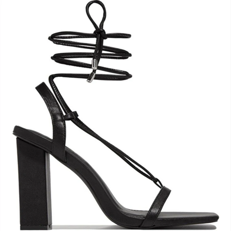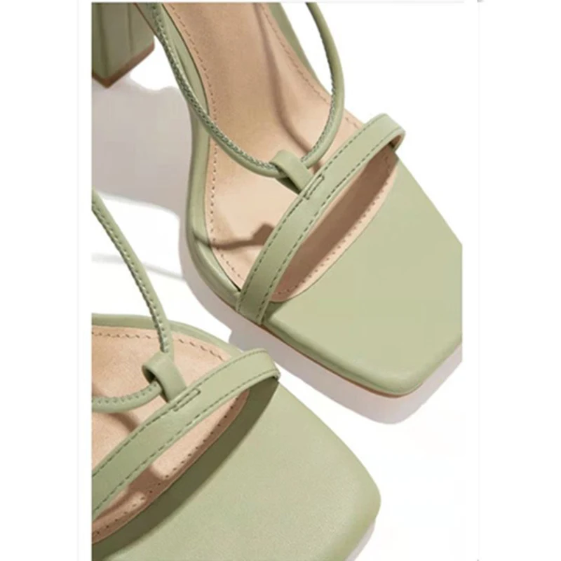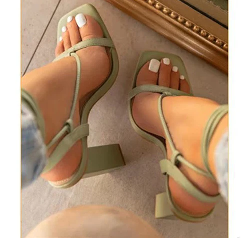 Oulylan New Summer Square Toe Strap Fashion Women’s High Heels Sandals Large Strap Thick Heel Sandals