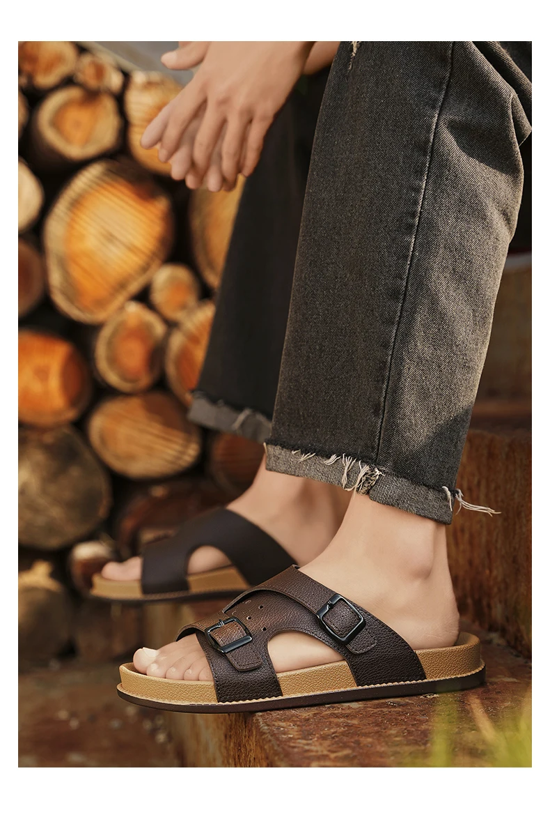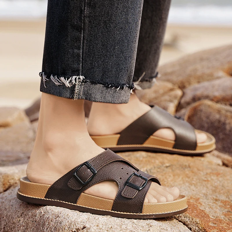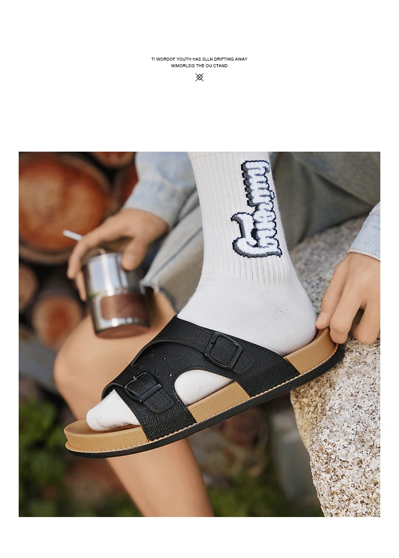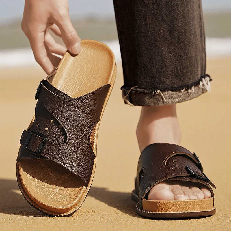 Outdoor casual slippers summer new men’s soft sole comfortable beach shoes flat sole anti slip youth fashion breathable sandals