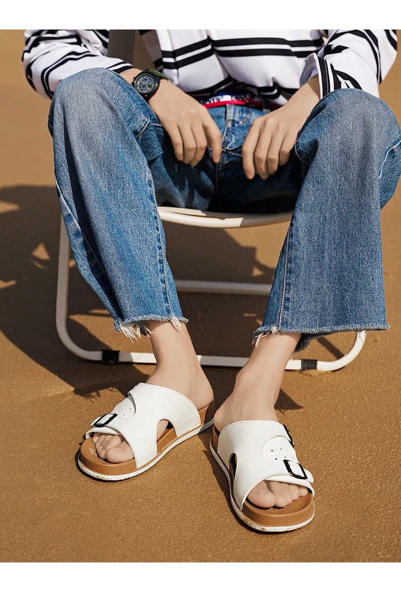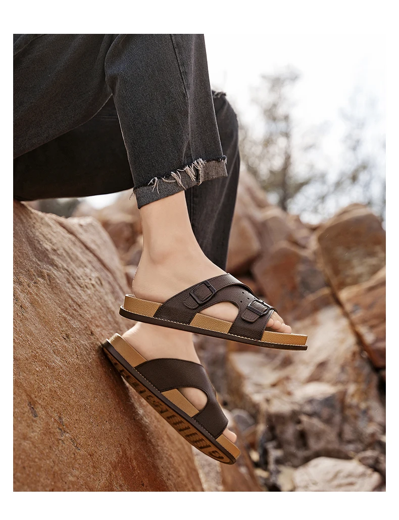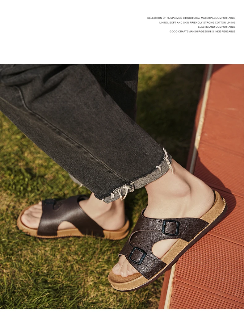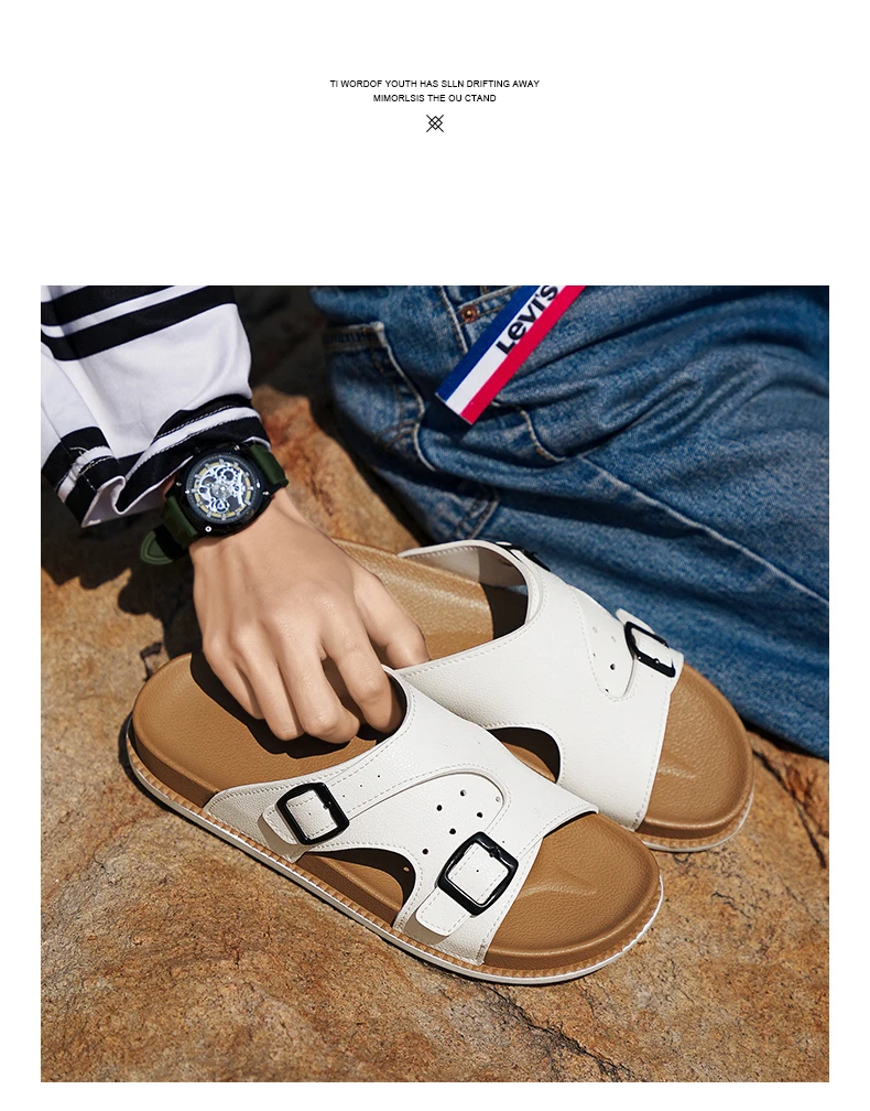 Outdoor casual slippers summer new men’s soft sole comfortable beach shoes flat sole anti slip youth fashion breathable sandals