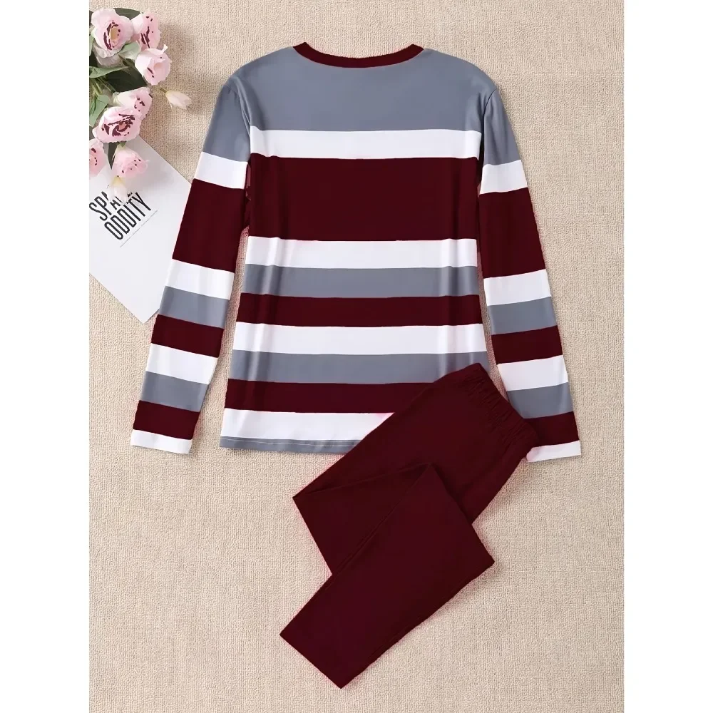 Plus Size 1XL-5XL Women’s Striped Printed T-shirt&Pants Women’s Fashion High Two Piece Set Casual Pantsuits with Crew Neck