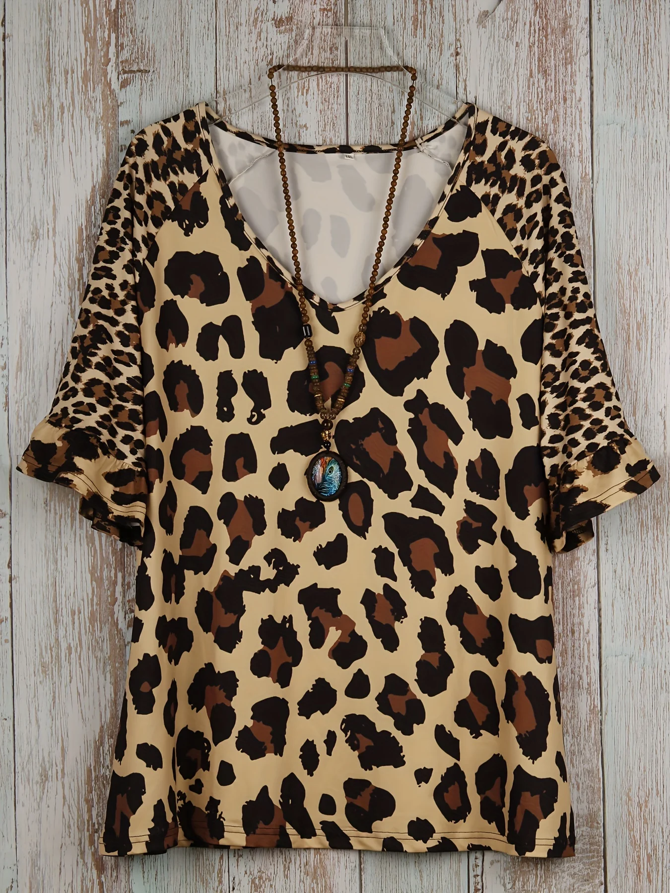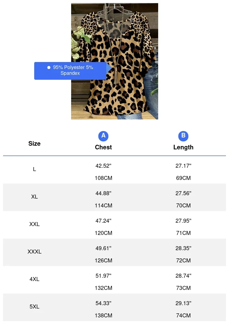 Plus Size Leopard Print T-Shirt Casual Short Sleeve Top For Spring & Summer Women’s Plus Size Clothing