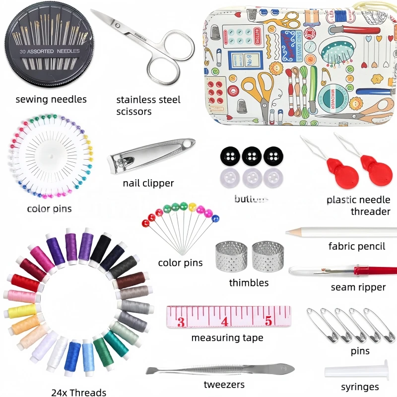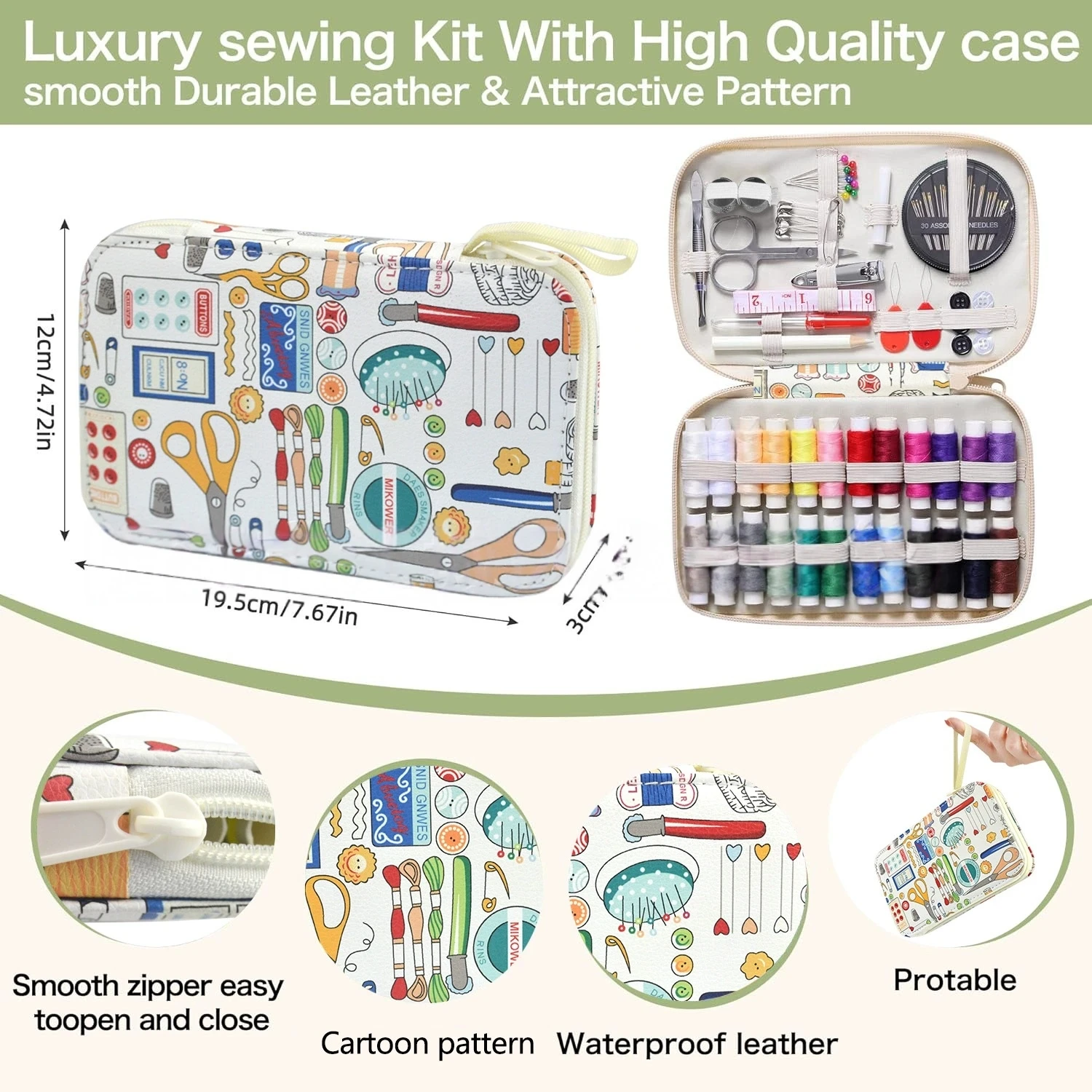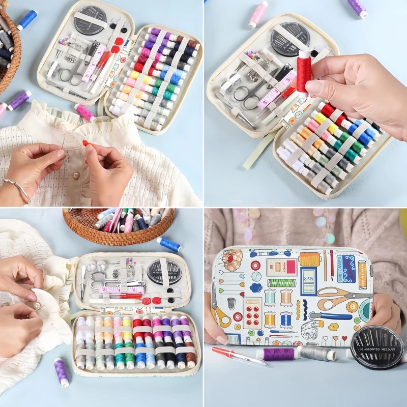 Printed pattern leather sewing kit, sewing tool set, 36 large spools, travel home, regular sewing kit
