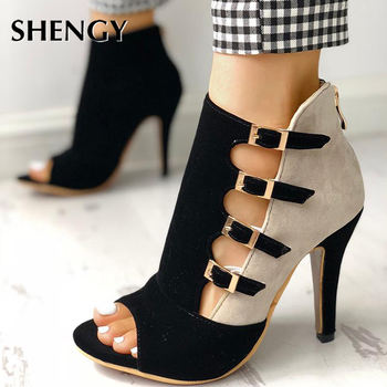 Women Spring High Heels Office Zipper 10cm Hollow Out High Sandals Poop Toe Buckle Strap Fashion Party Wedding Shoes
