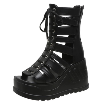 Sale Ladies 9.5CM Wedge Sandals Fashion High Heels Goth Punk Summer Casual Platform Shoes Ladies Comfort Lace Up Zipper Buckle