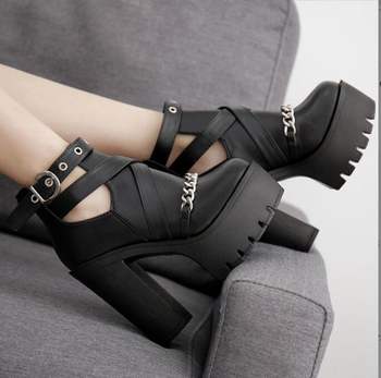 New sexy High heels Fashion Ankle Boots For Women High Heels Casual Cut-outs Buckle Round Toe Chain Thick Heels Platform Shoes