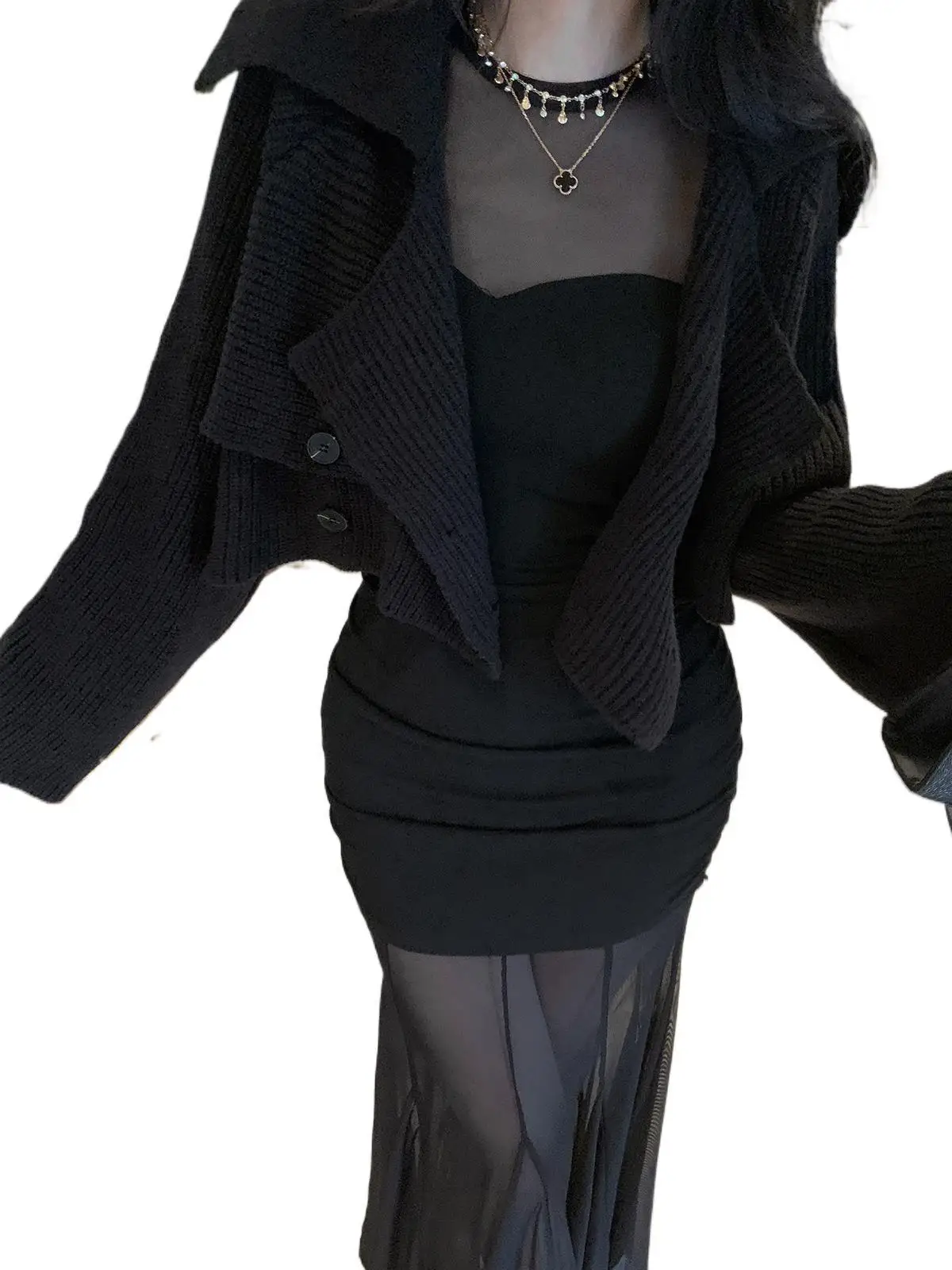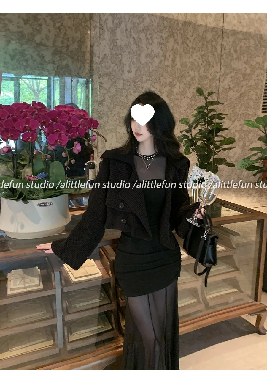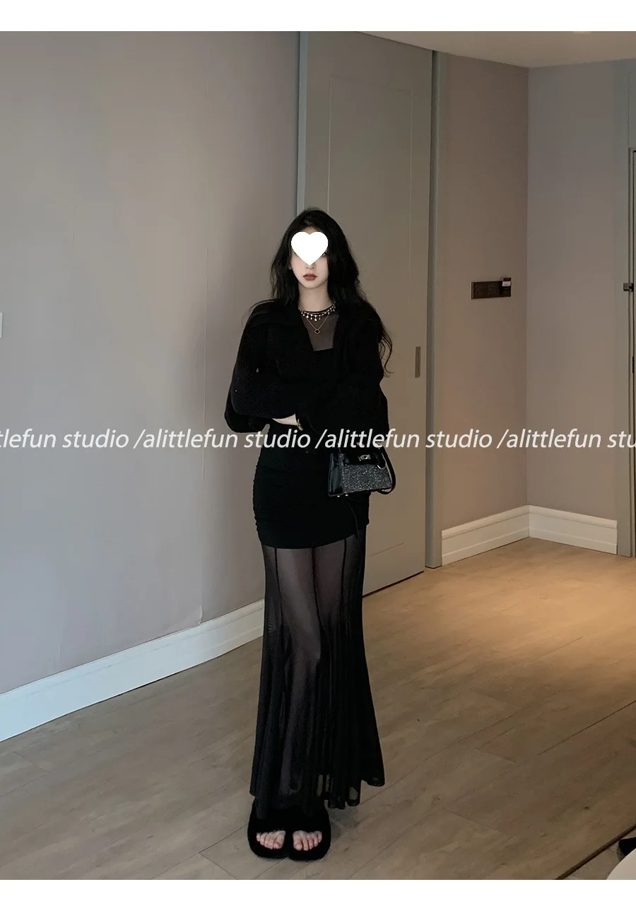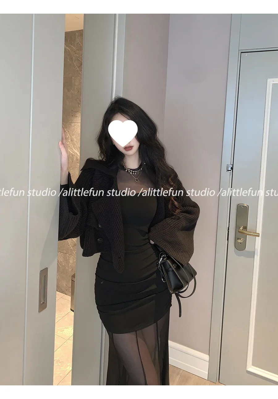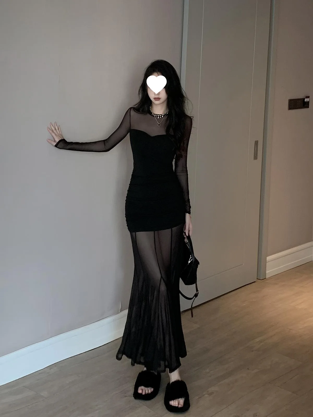 Pure Desire Sexy Long Sleeve Mesh Splice Dress Women’s Autumn Hot Girl Waist in Slimming Fish Tail Long Dress
