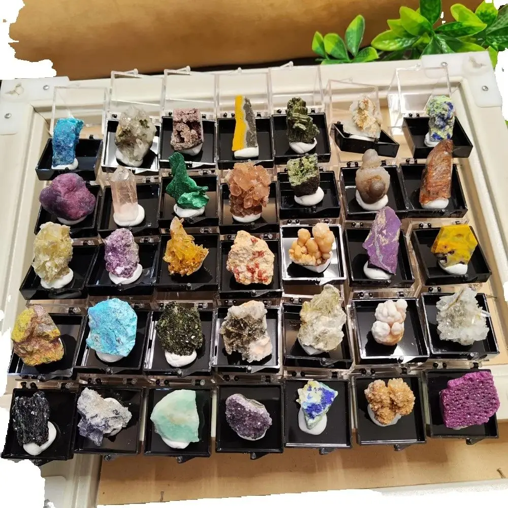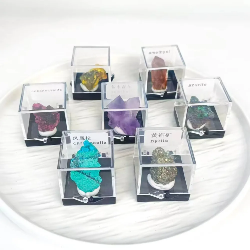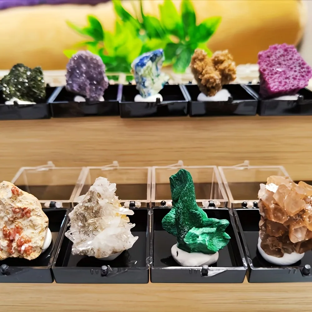 Rare Natural Crystal Mineral Display Box with Sturdy Base Quartz Amethyst Pyrite Raw Stone Holder Specimen Boxes Collect Gift