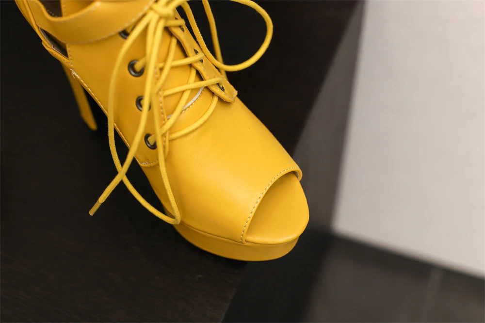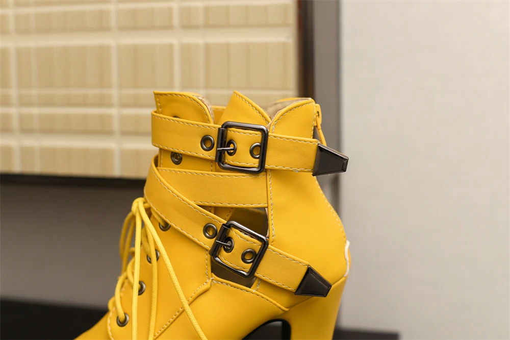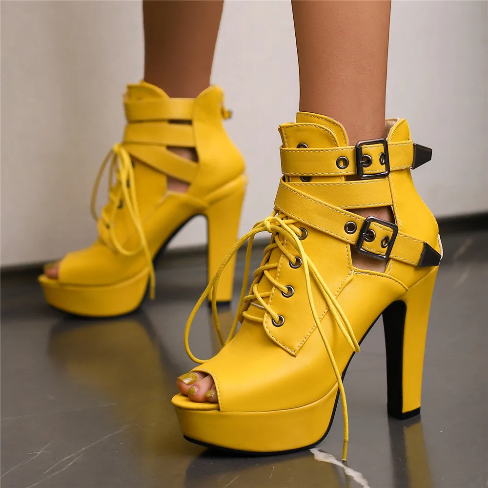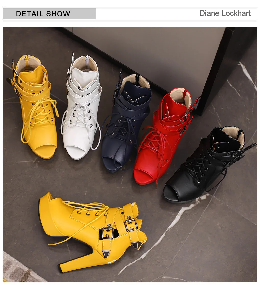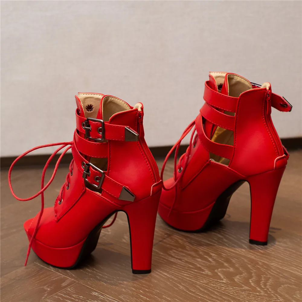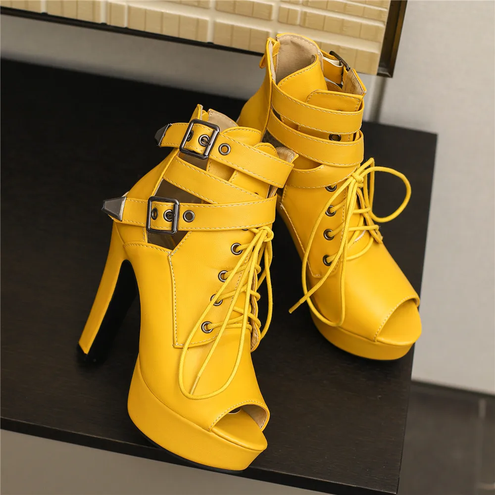 Red Yellow White Women Peep Toe Ankle Boots Platform Lace Up High Heels Female Buckle Autumn Winter Sexy Men Shoes Large Size