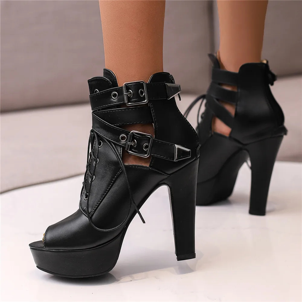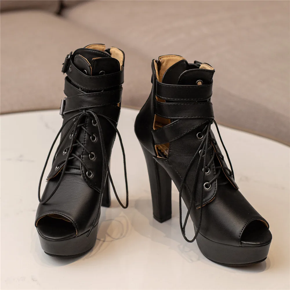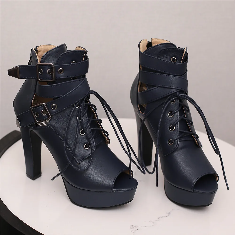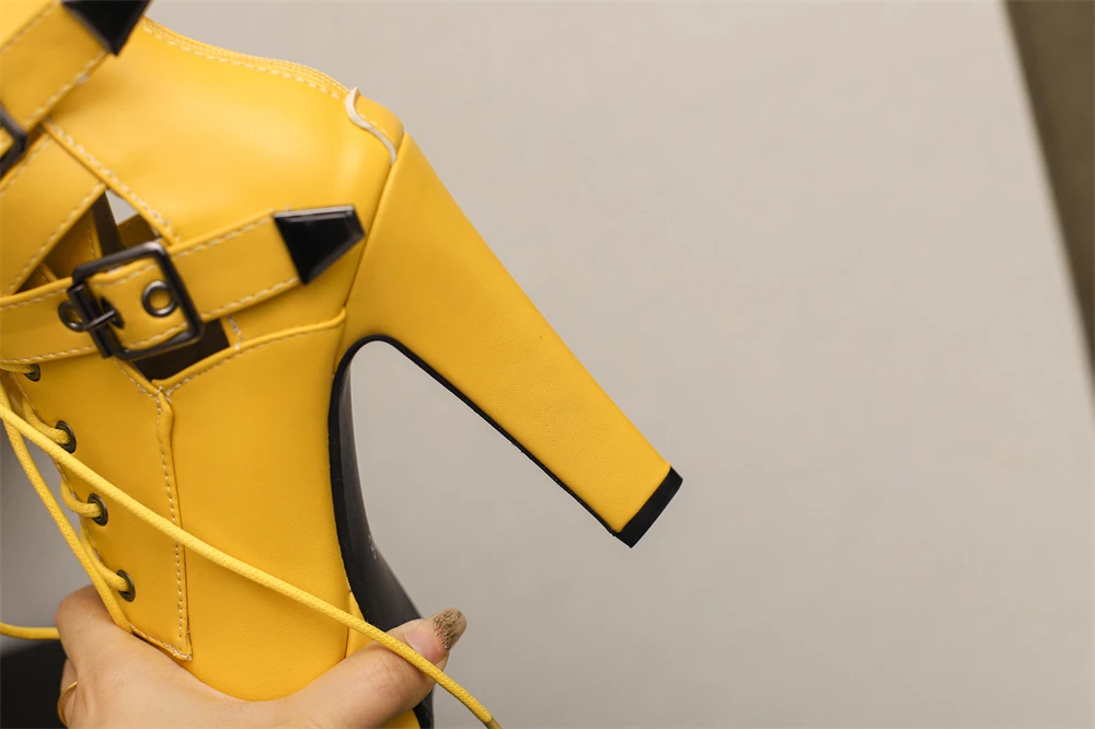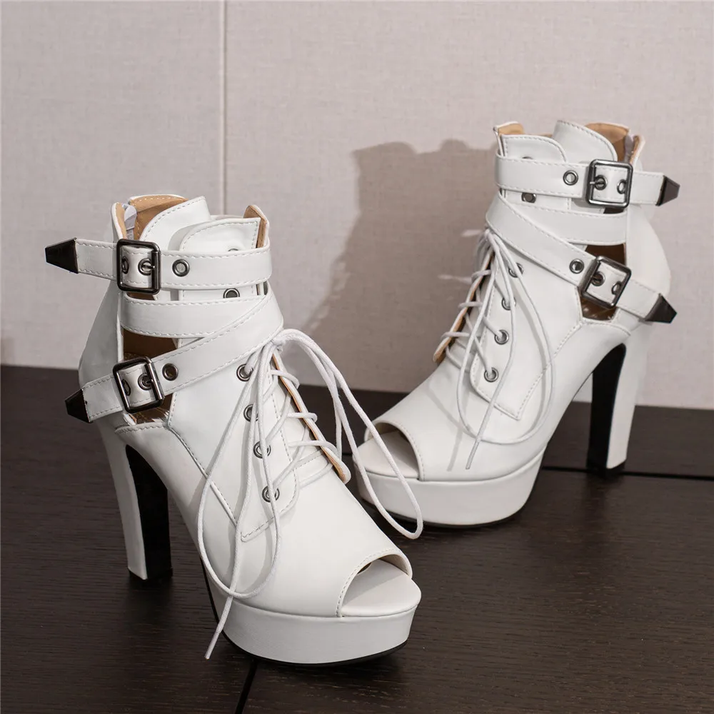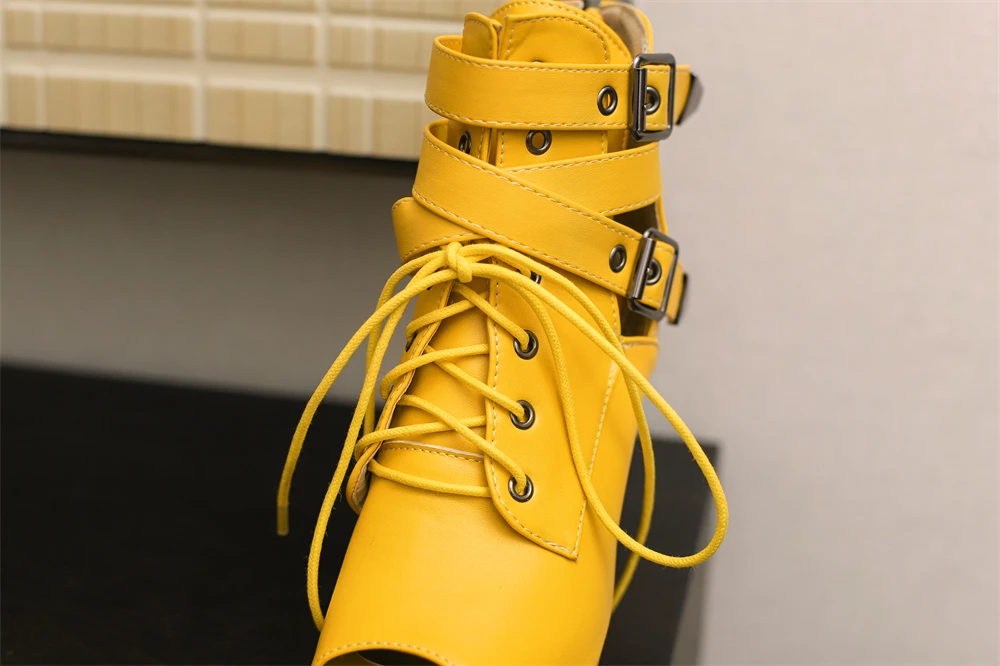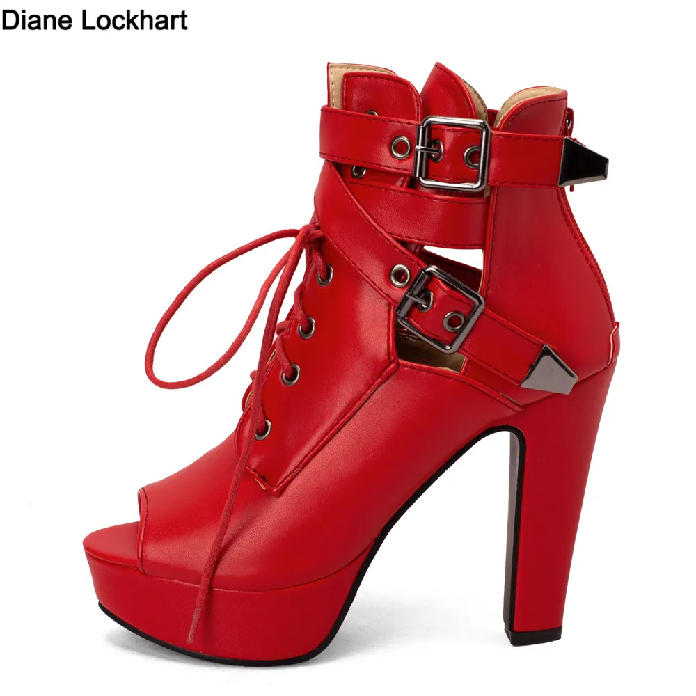 Red Yellow White Women Peep Toe Ankle Boots Platform Lace Up High Heels Female Buckle Autumn Winter Sexy Men Shoes Large Size
