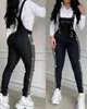 Rhinestone Decor Buckled Suspender Jumpsuit Women Sleeveless High Waist Spring Summer Overall Pants Jumpsuits Solid Color