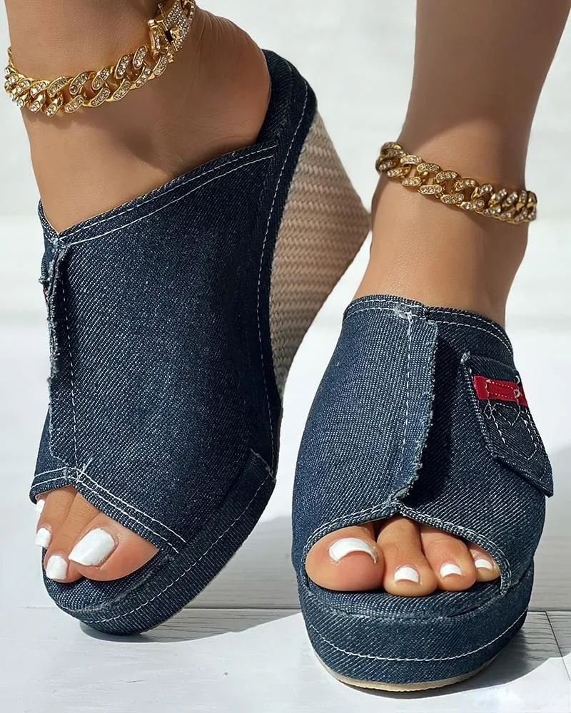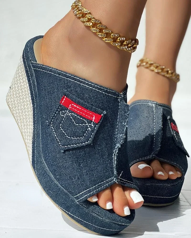 Sandals Women’s Denim Peep-Toe Wedge Sandals Slope Women Platform New Summer Female Fish Mouth Platform High Heels Wedge Shoes