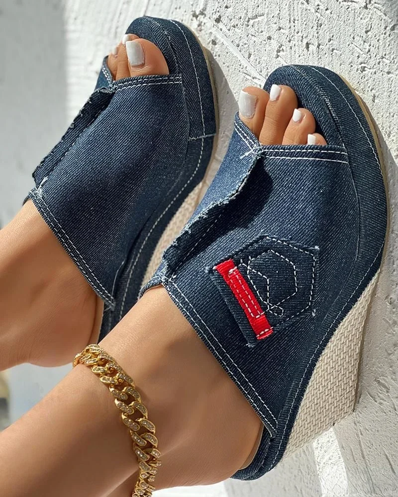 Sandals Women’s Denim Peep-Toe Wedge Sandals Slope Women Platform New Summer Female Fish Mouth Platform High Heels Wedge Shoes