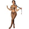 Sexy Fashionable Leopard Print Two-Piece Set Women’s Clothing Hot Sale Strapless Crop Top Matching Long Pants Ensemble
