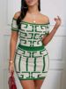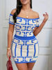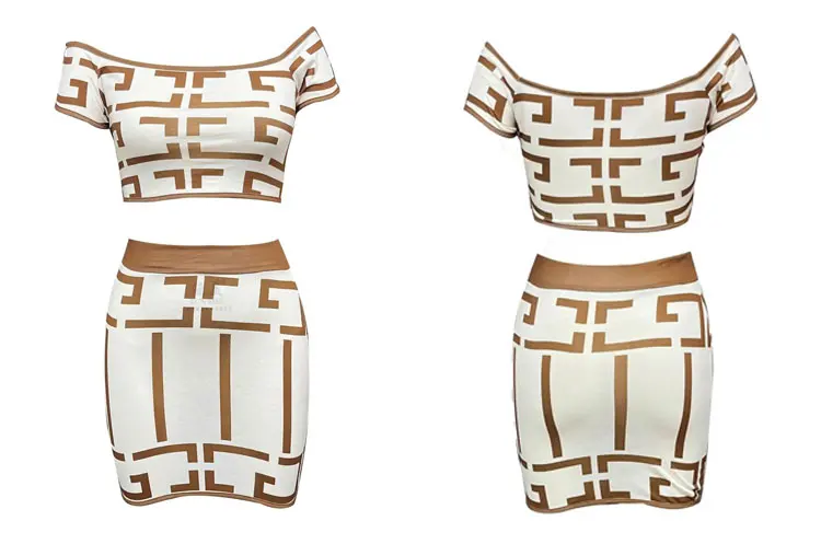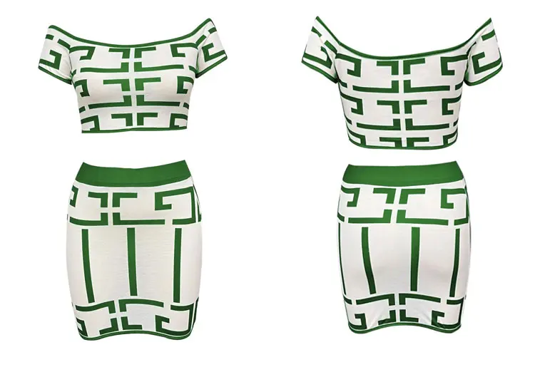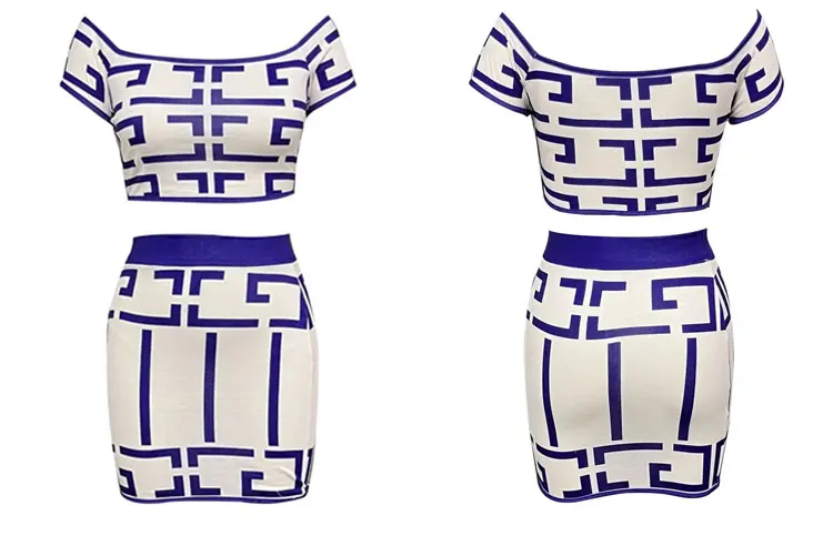 Sexy Geometric Print Crop Top Skirts 2 Piece Set Off Shoulder Short Sleeve Top High Waist Slim Skirt Outfits Women’s Streetwear