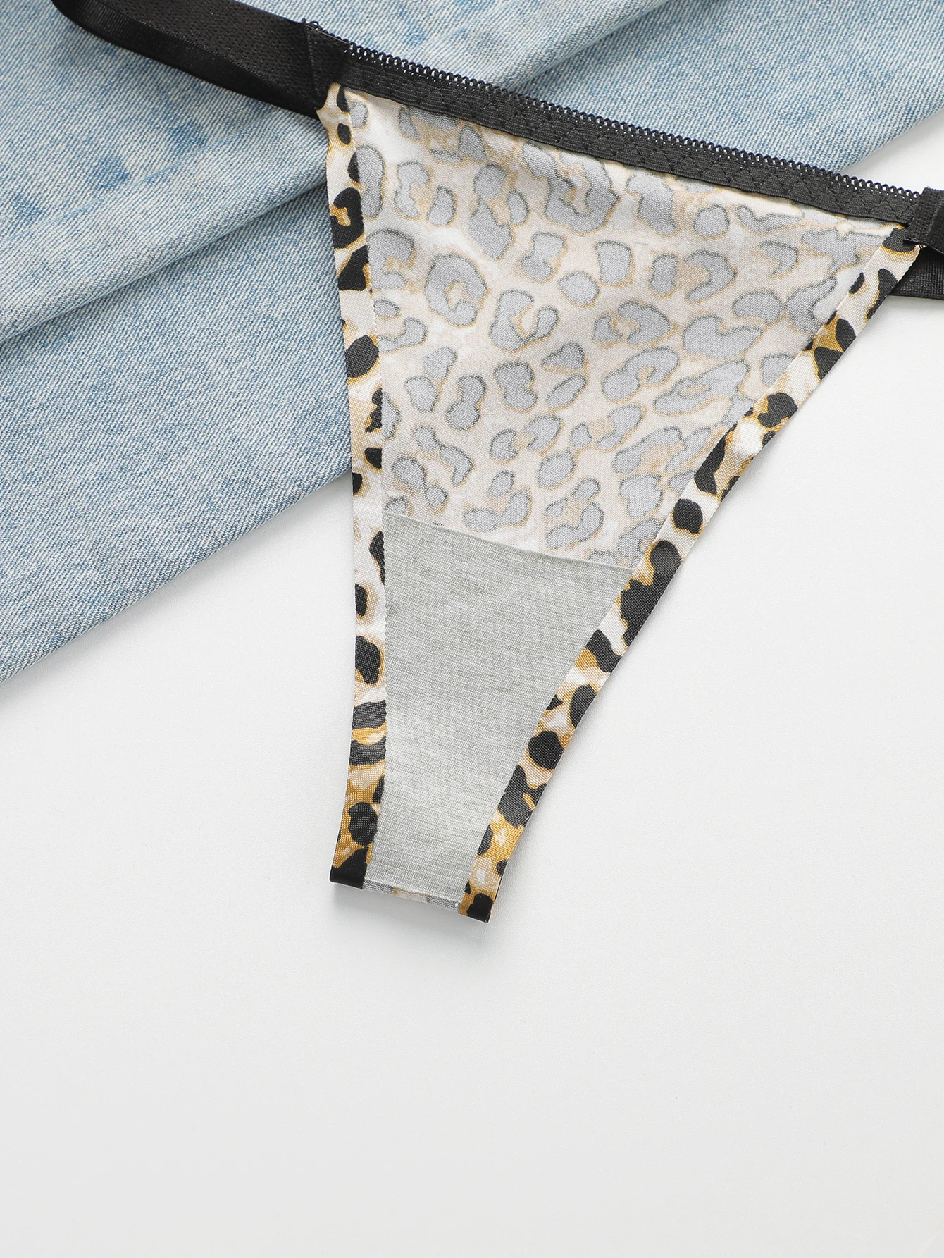 Sexy leopard print 2-piece set with gathered lifting and thickened steel support bra set for women’s underwear B2051