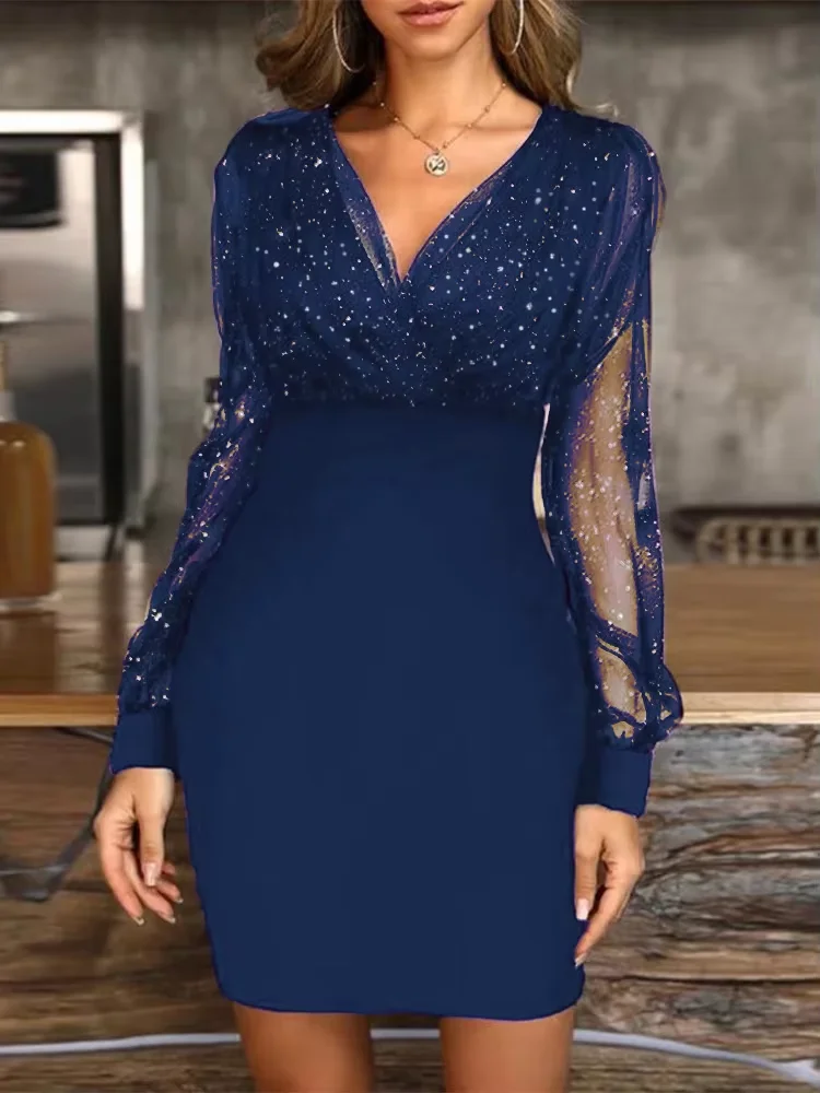 Sexy V-Neck See Through Long Sleeve Dress Women Spring Autumn New Year Party Mini Dresses vestidos cortos