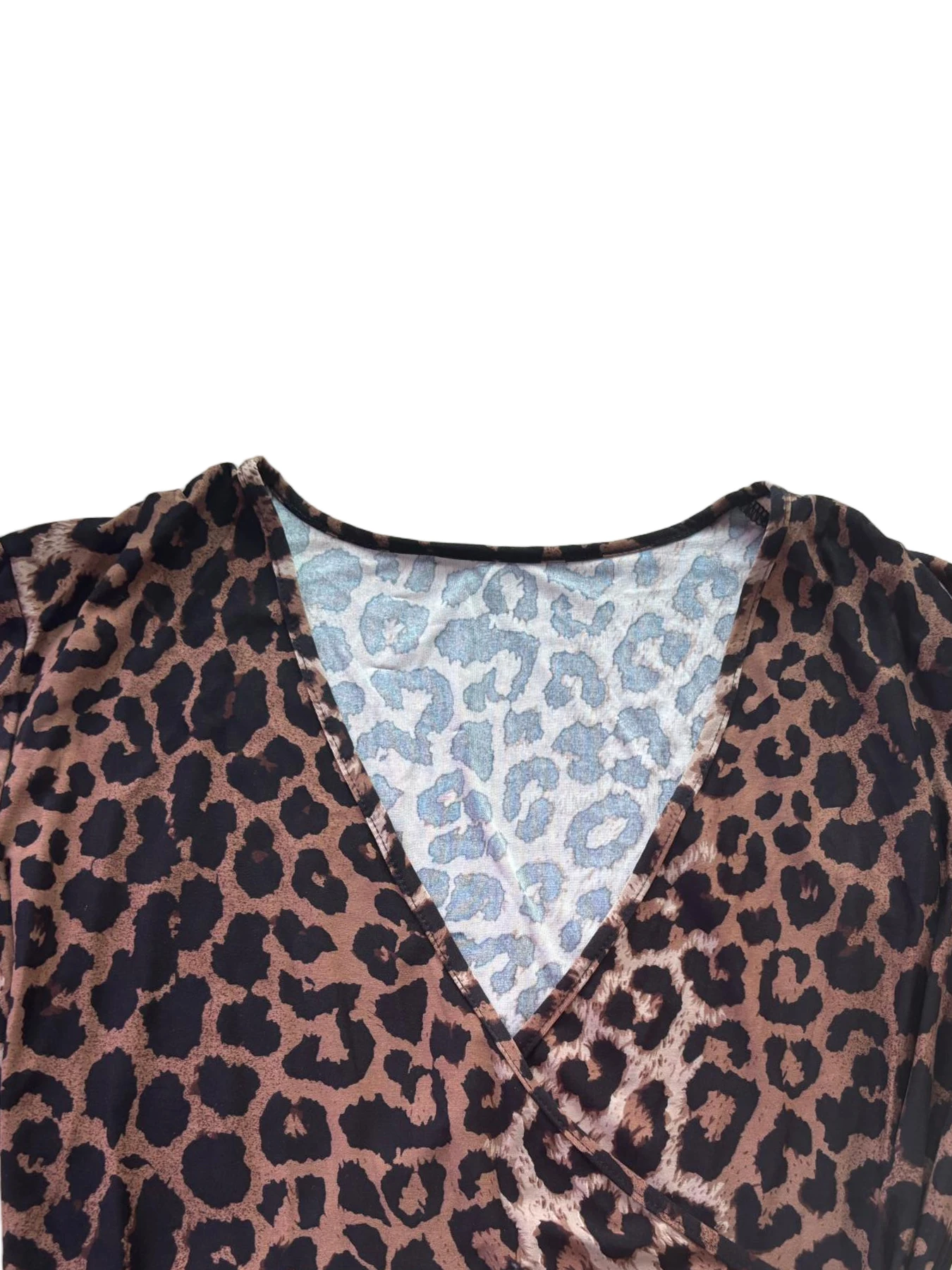 Sexy V-neck slim fit leopard print women’s knitted T-shirt, autumn style women’s high stretch top