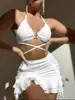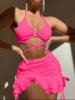 Sexy Yellow Bikini Women Solid Halter Ring Linked Criss Cross Cover Up 3 Piece Swimsuit 2025 Bathing Suit Ruffles Skirt Swimwear