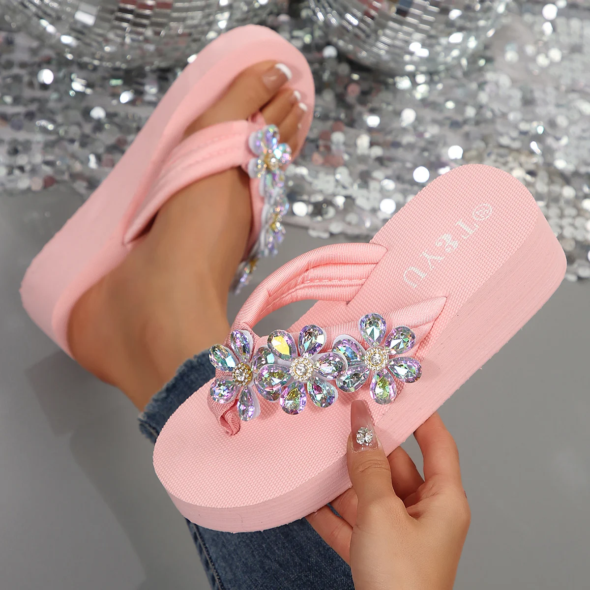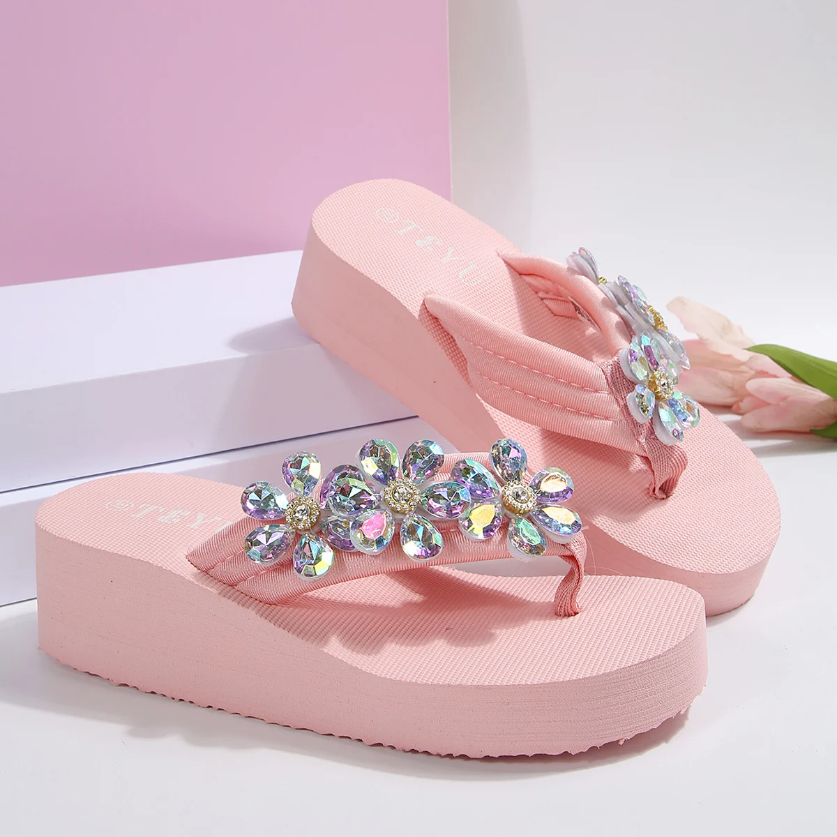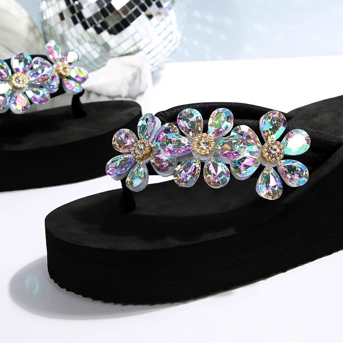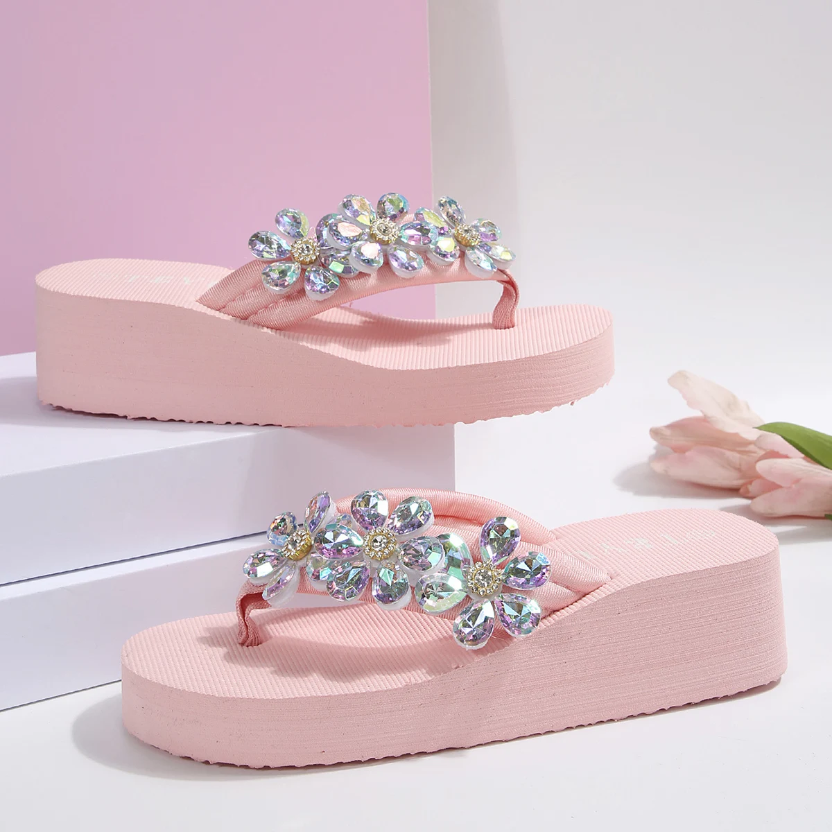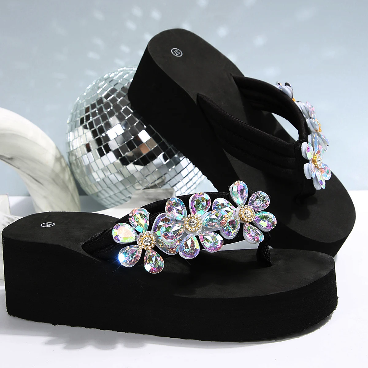 Shiny Rhinestone Chunky Platform Sandals Women 2025 Summer Wedge Heels Beach Flip Flops Woman Clop Toe Outdoor Slippers Slides