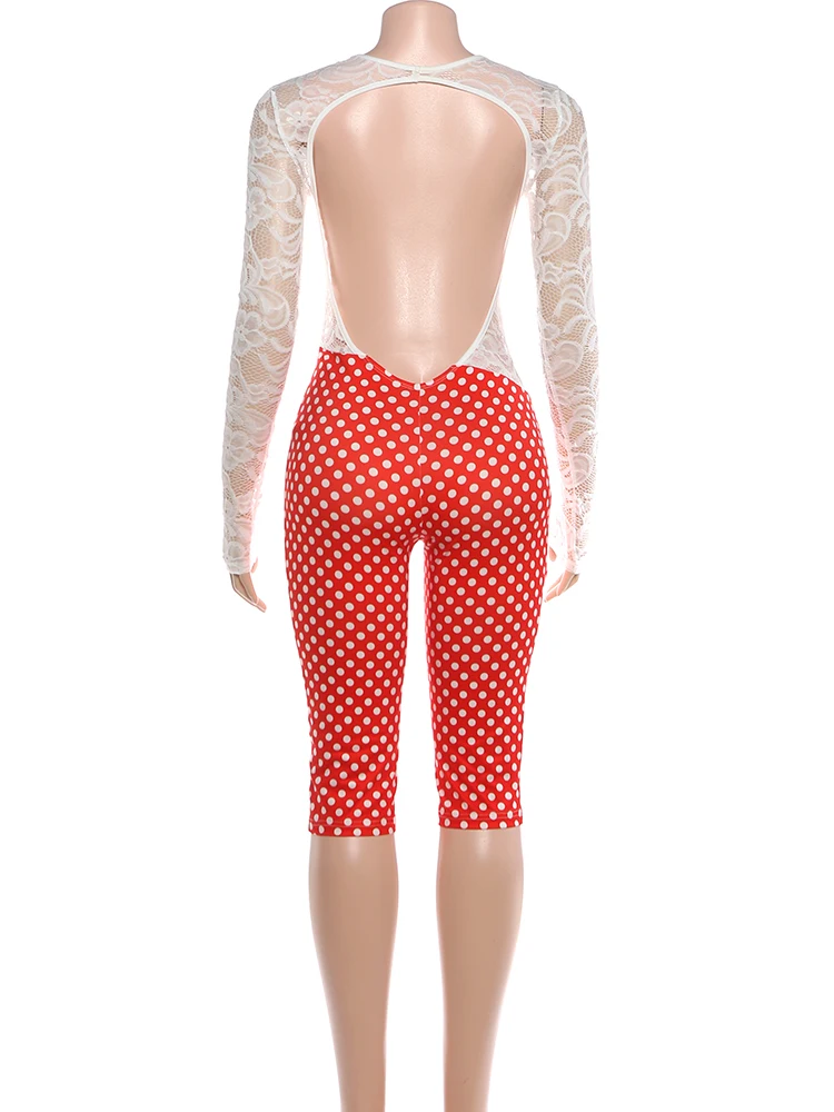 SIsterlinda Backless Romper Women Sexy Jacquard Patchwork Dot Print Tight Midnight Hipster Street Activity Skinny Fall Playsuit