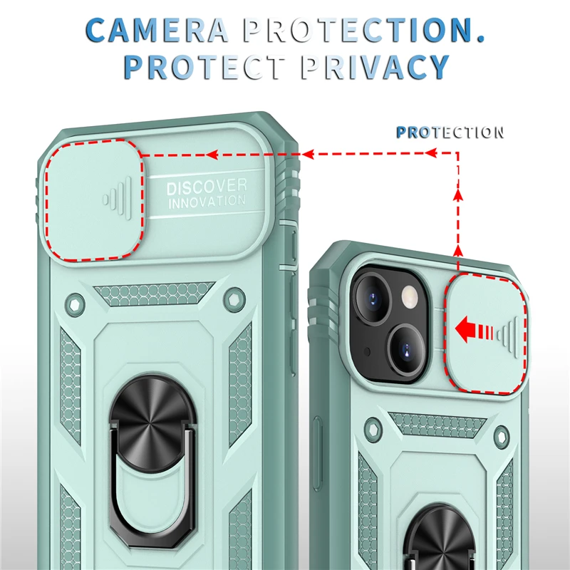 Slide Camera Lens Protection Magnetic Ring Holder Case For iPhone 17 16 15 14 13 12 11 Pro Max Plus Mini XR XS Shockproof Cover