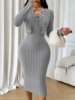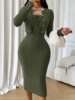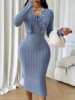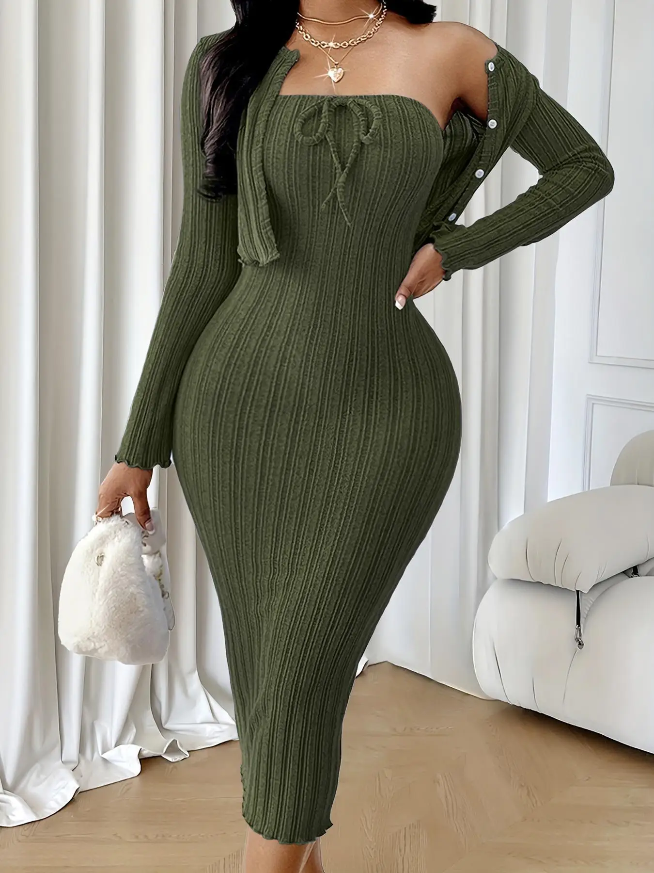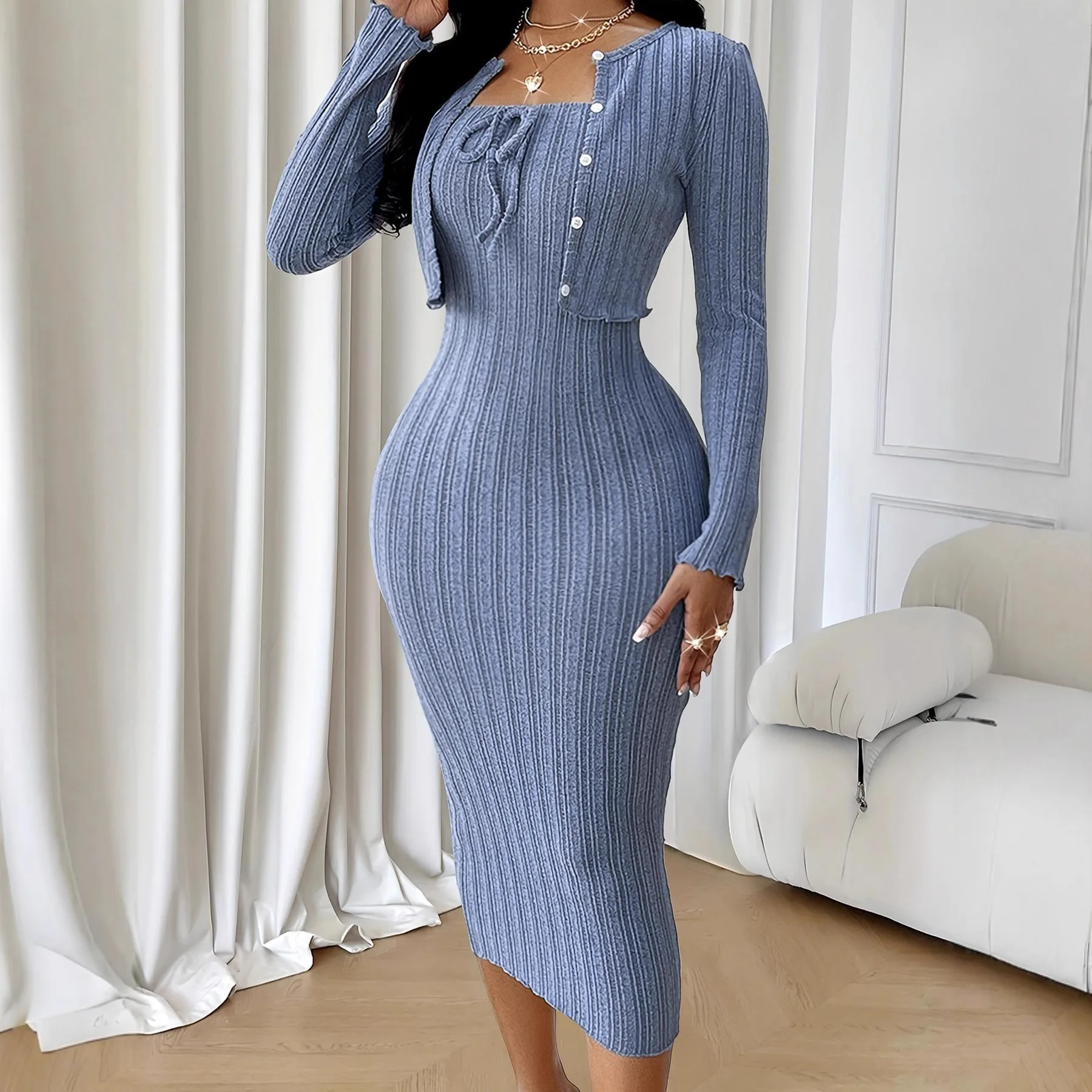 Slim Fit French Style Knitted Dress Set for Women Mid-Length Casual Outfit Polyester Lycra Blend Long Sleeve Sweet Style