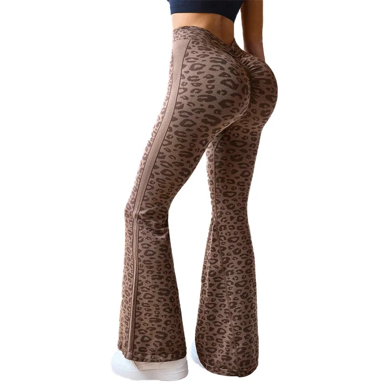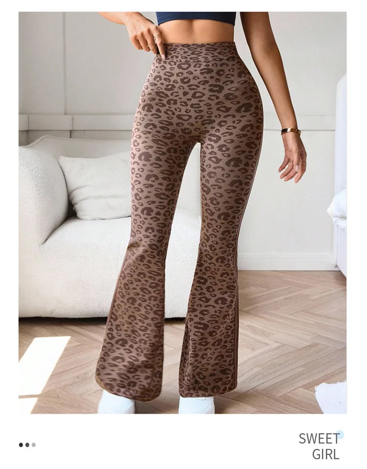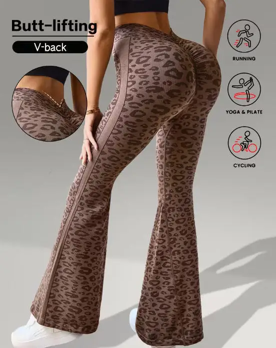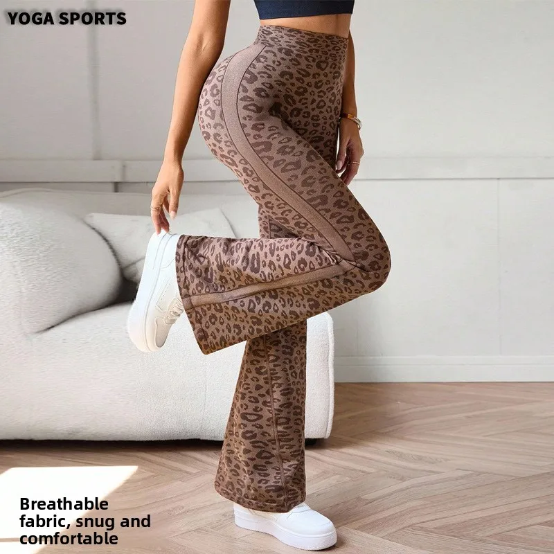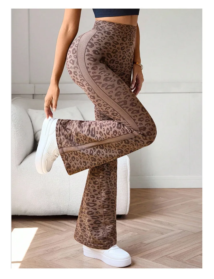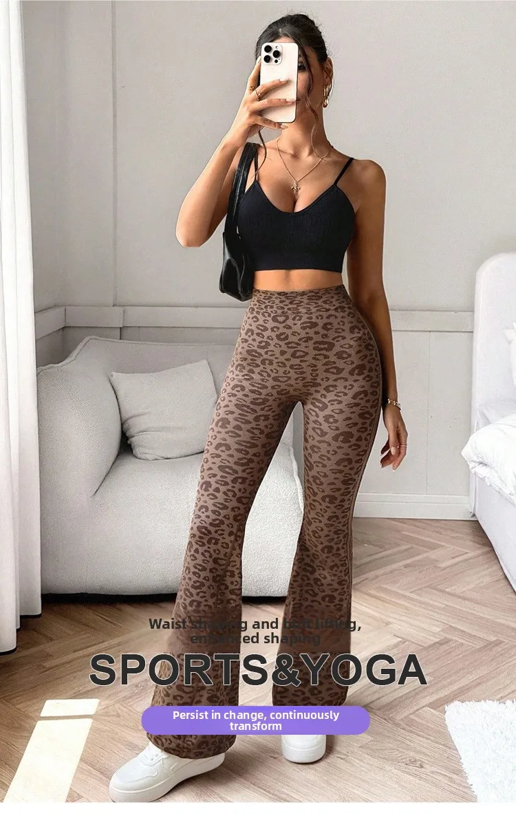 Slimming High Waist Yoga Pants Women’s Fitness Sports Micro Flared Tapered Leggings Leopard Print Outerwear Running Cycling