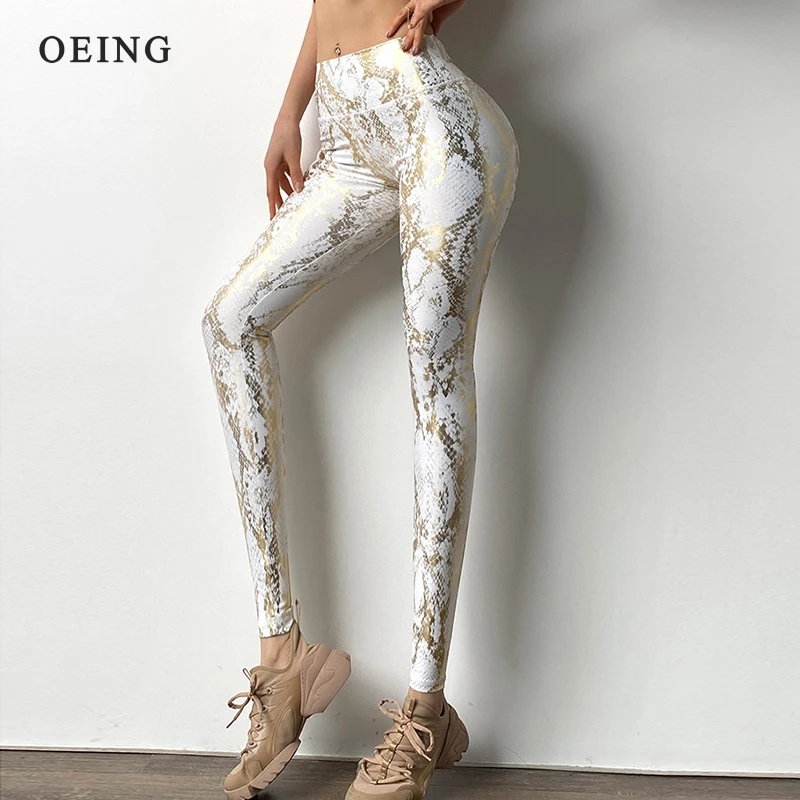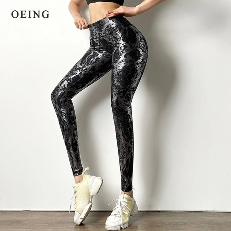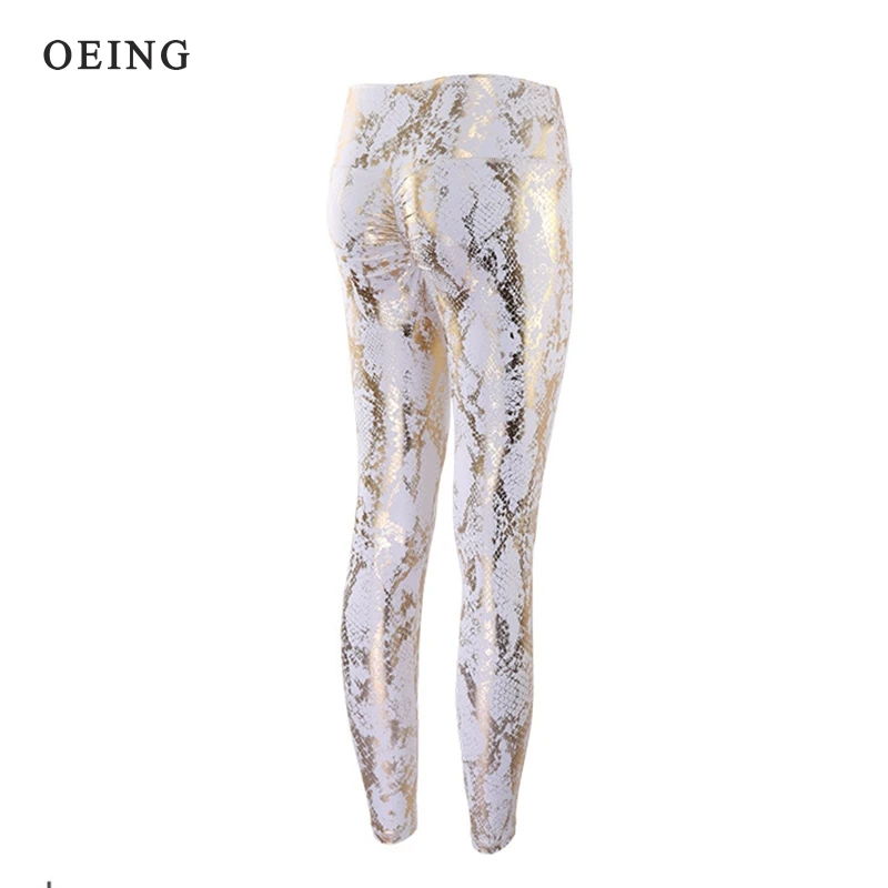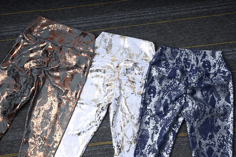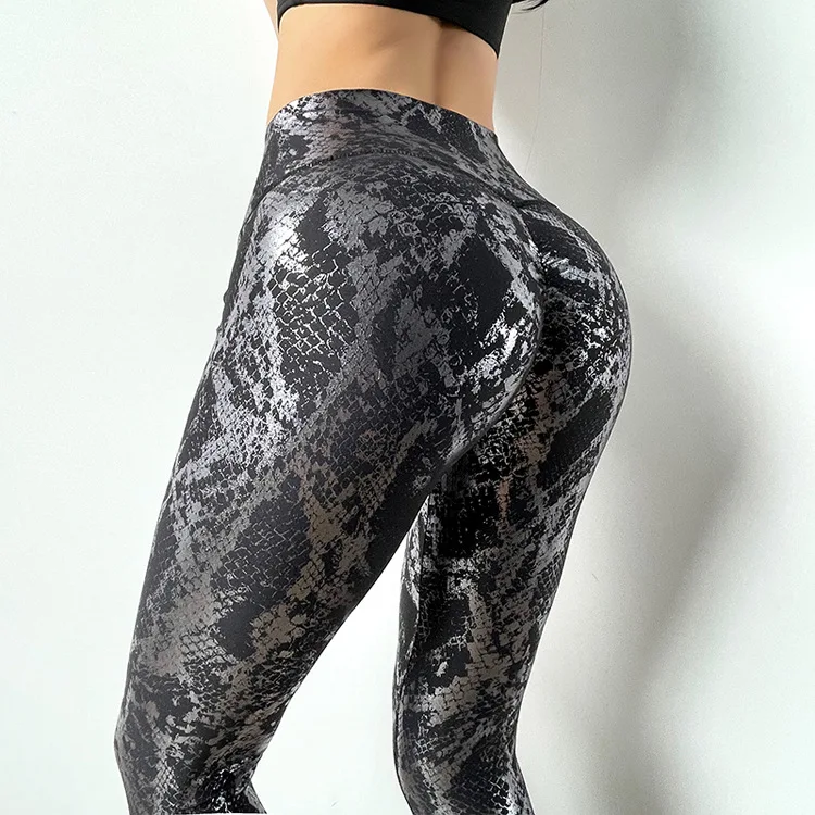 Snake Print Glitter Elastic Women Leggings Tights Bubble Butt Lift Sexy High Waist Yoga Pants Fitness Push Up Gym Sports Pants