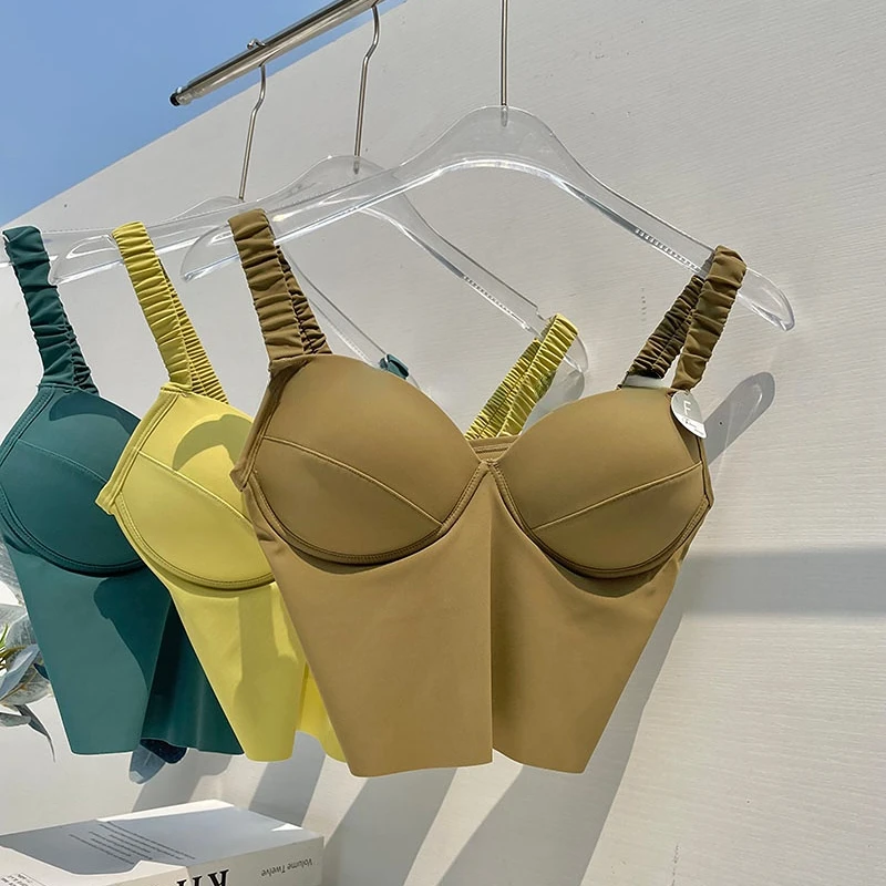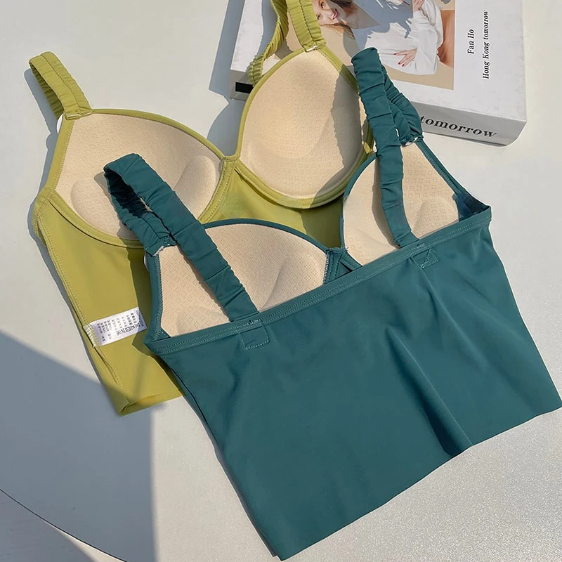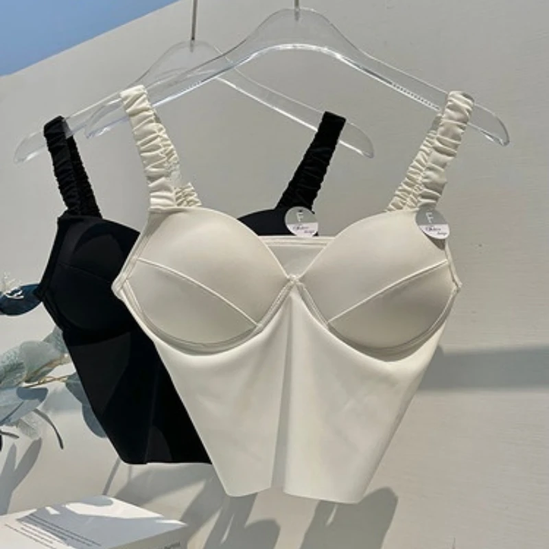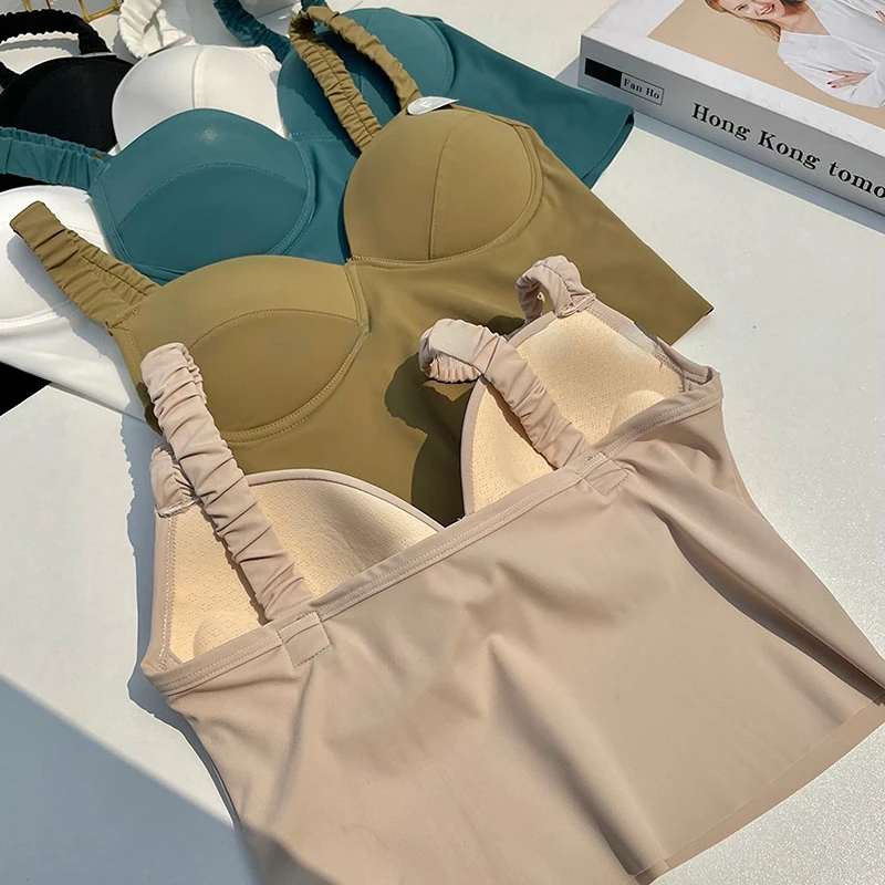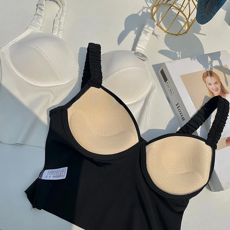 Spaghetti Strap Tanks Camis for Women Sexy Casual Solid Colours Summer Femme Croset Crop Tank Tops with Built In Bras Camisoles