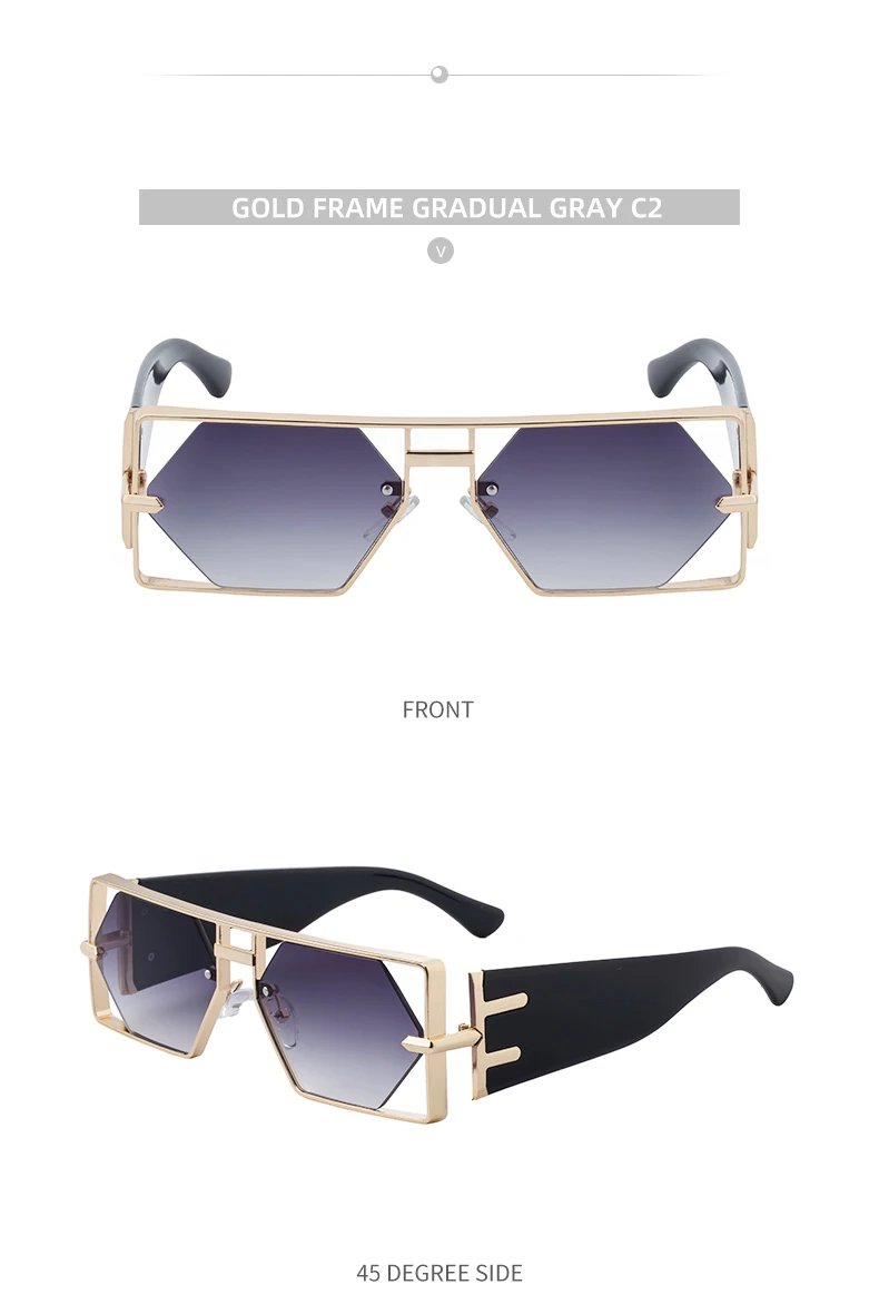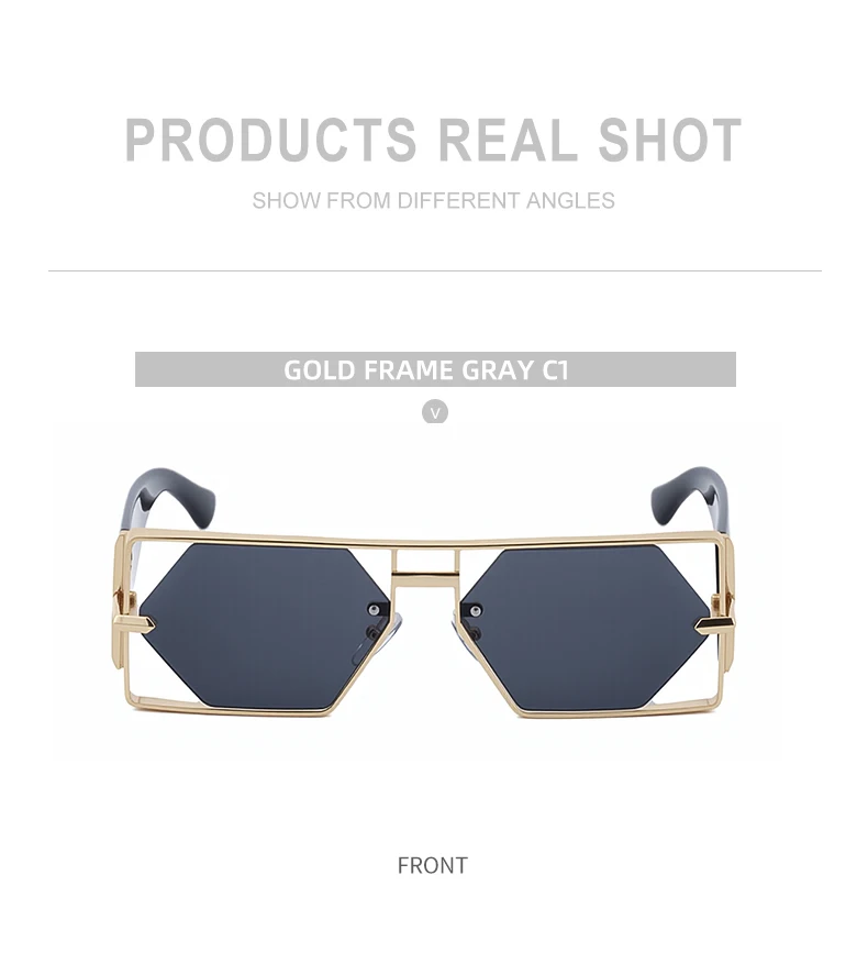 Steampunk Rectangle Sunglasses Women Men 2025 Luxury Hollow Metal Frame Sun Glasses Vintage Punk Hexagon Eyewear UV400 Shades